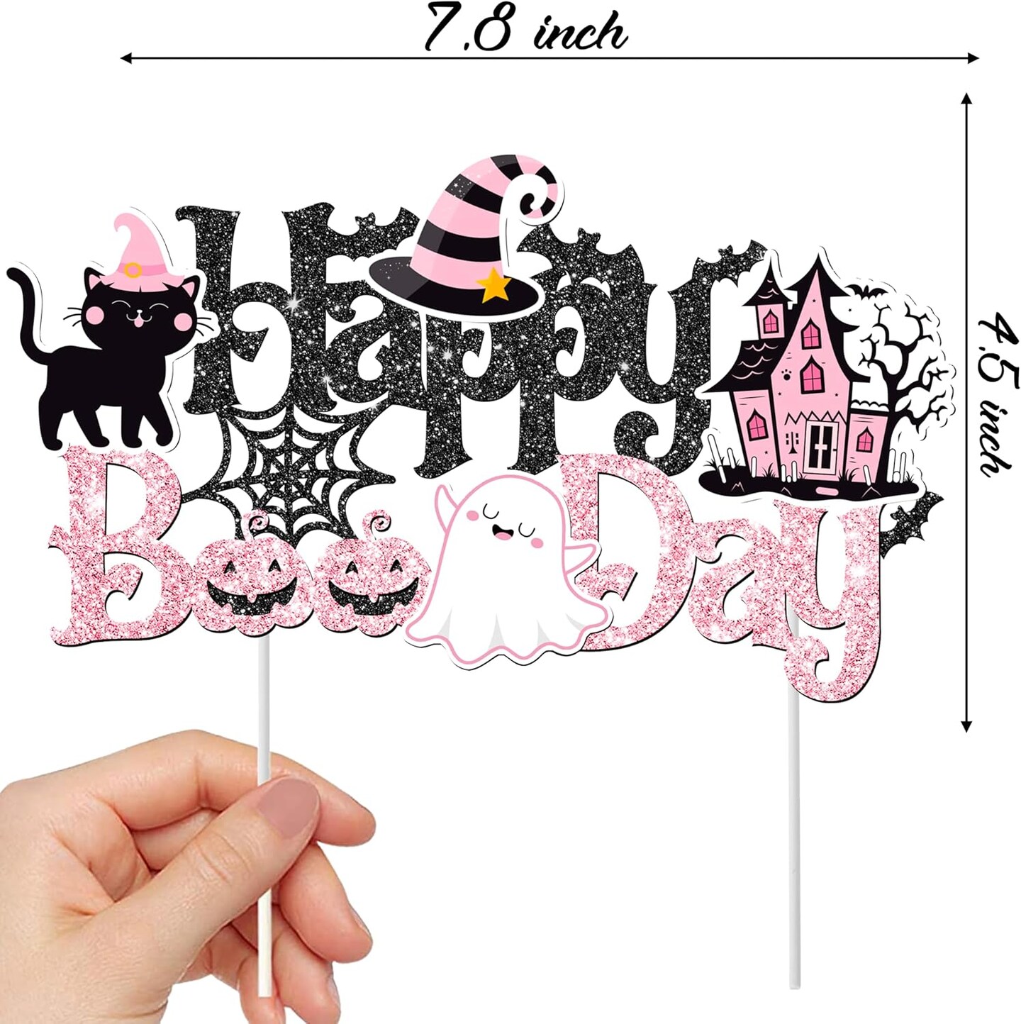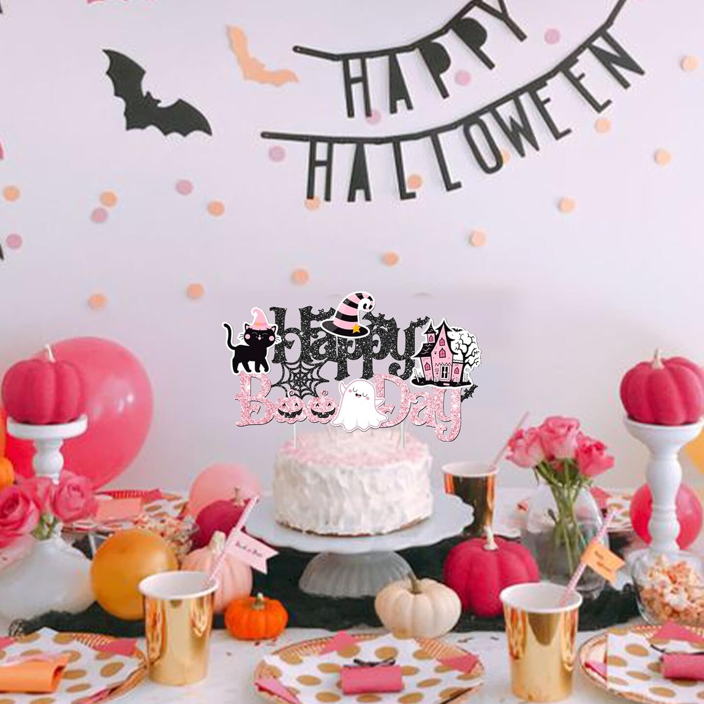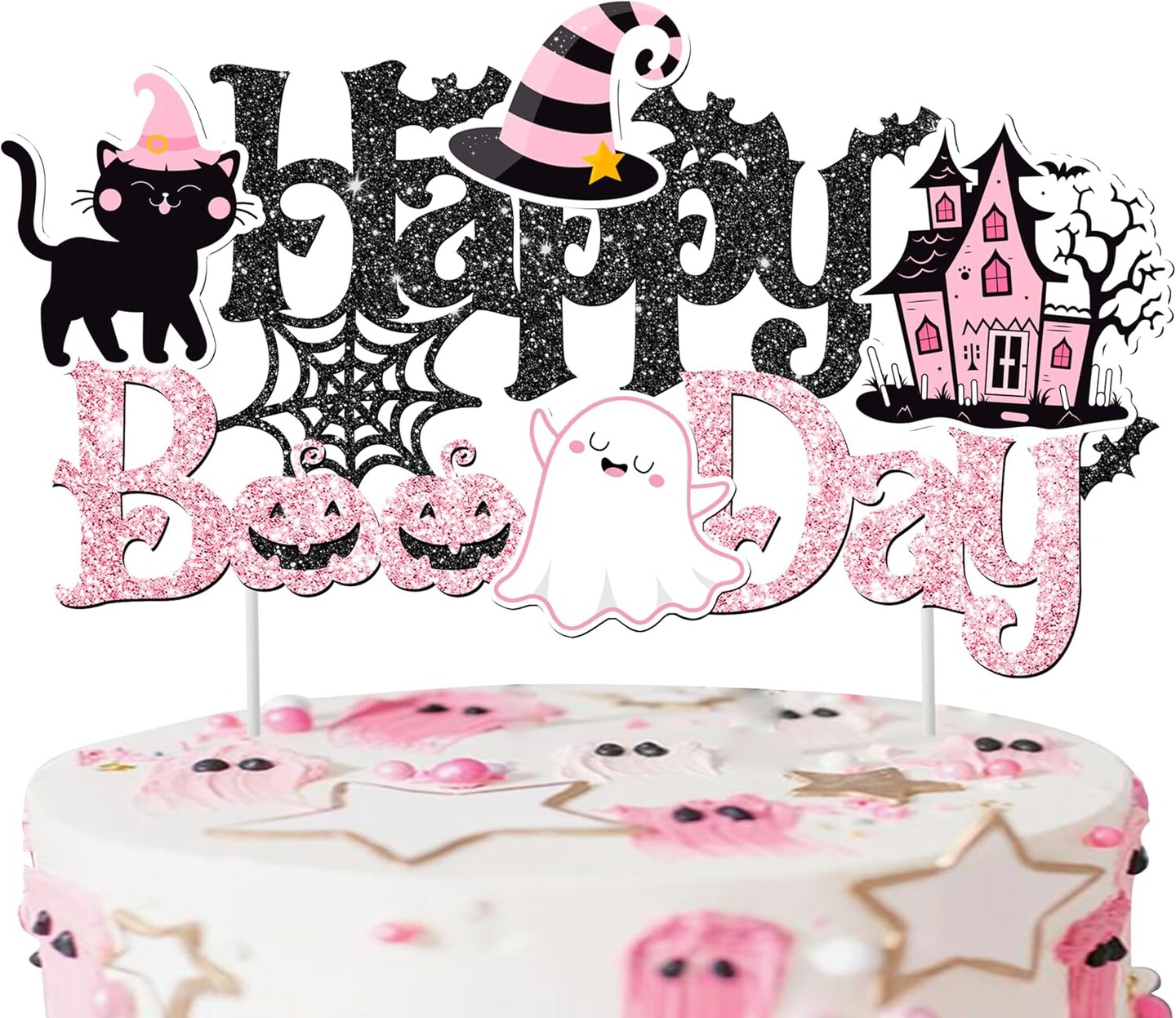 “Happy Boo Day” Cake Topper – Halloween Birthday Party Decoration with Ghost, Pumpkin & Bat Theme for Girls, Baby Showers & Spooky Celebrations