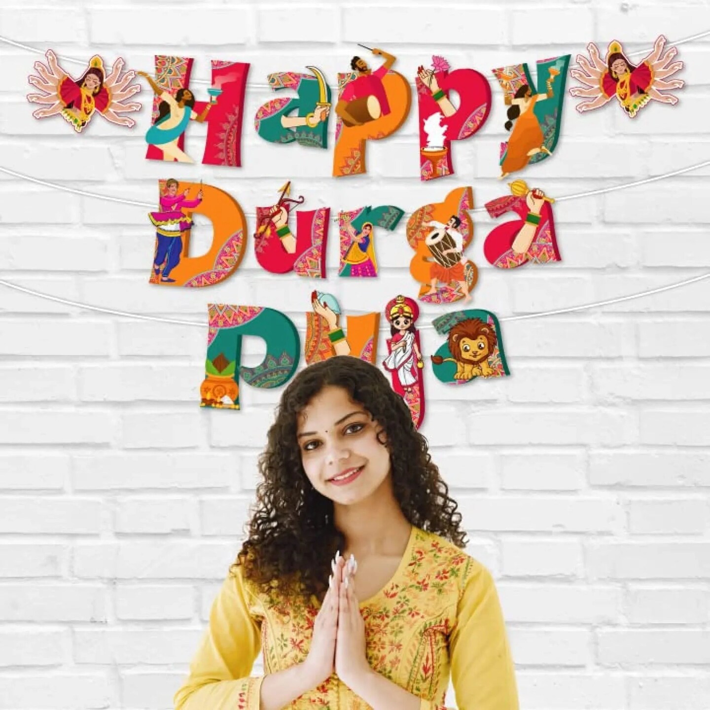 Happy Durga Puja Banner for Hindu Navratri Festival Celebration Bunting Diy Home Temple Indoor Outdoor Decoration Indian Party Supplies Durga Pooja Decor Ideas