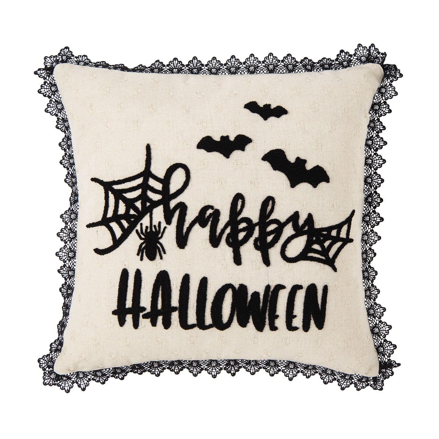 Happy Halloween Embroidered Bats and Spiderweb Throw Pillow, 18" x 18"