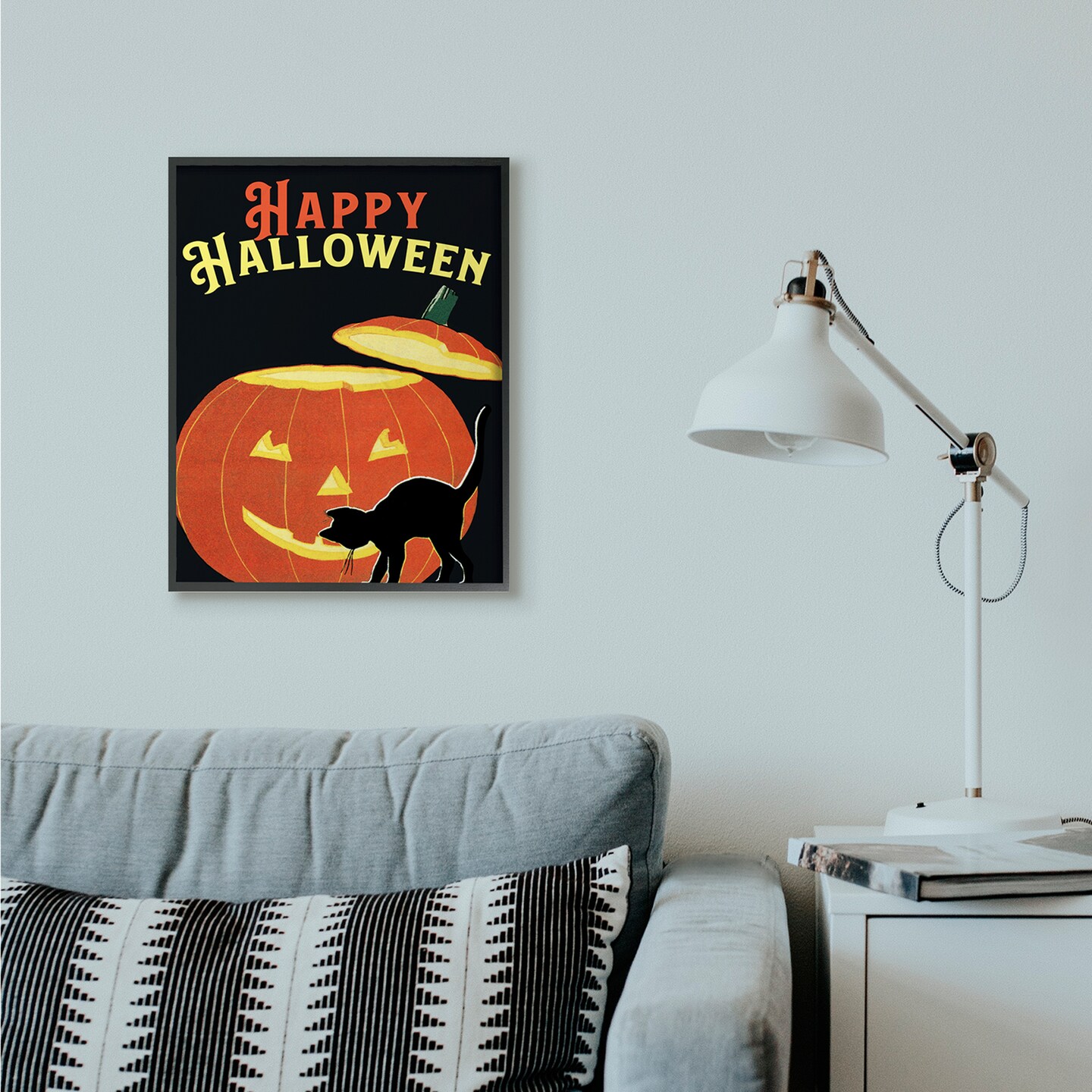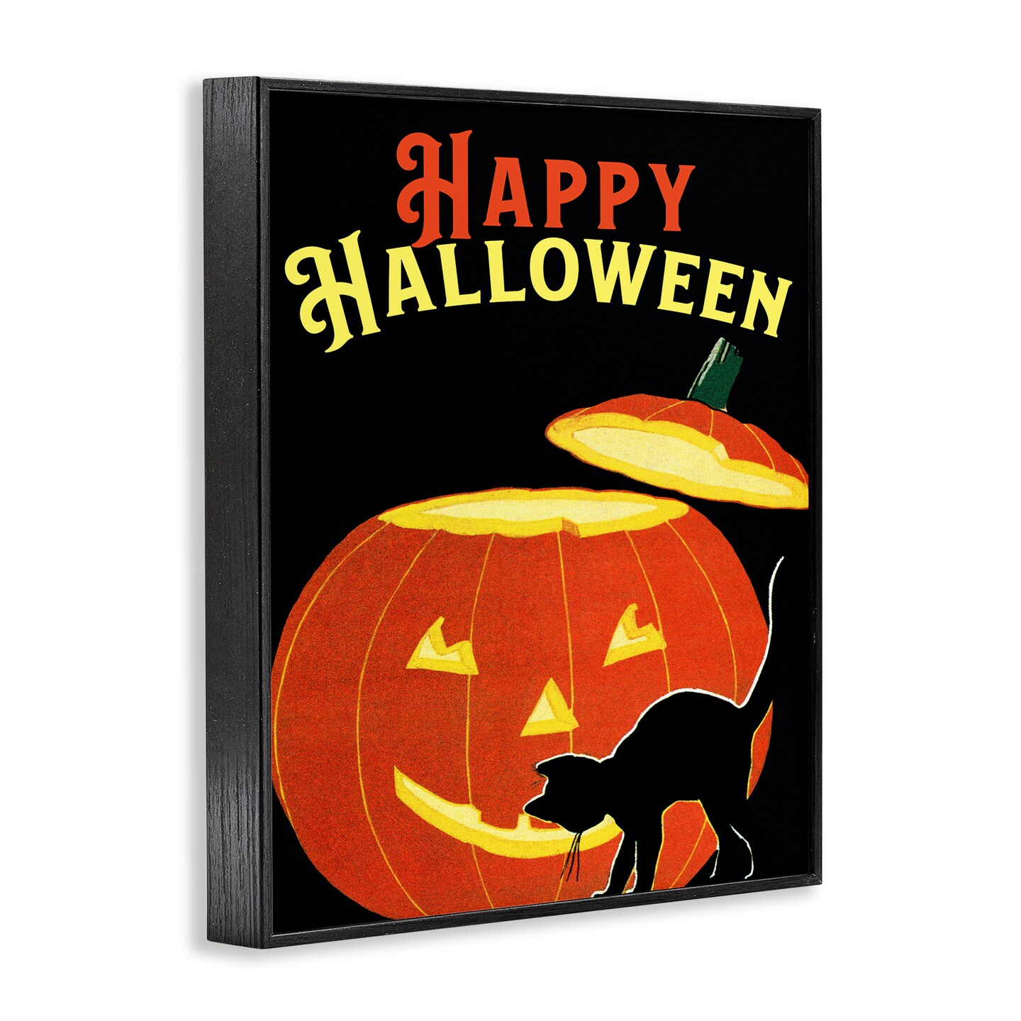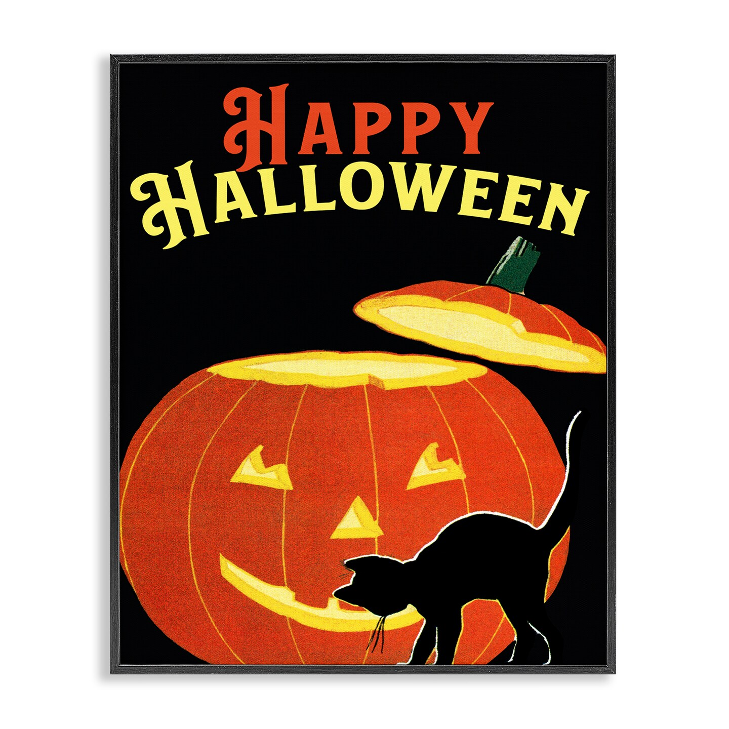 Happy Halloween Pumpkin Cat Framed Giclee Art