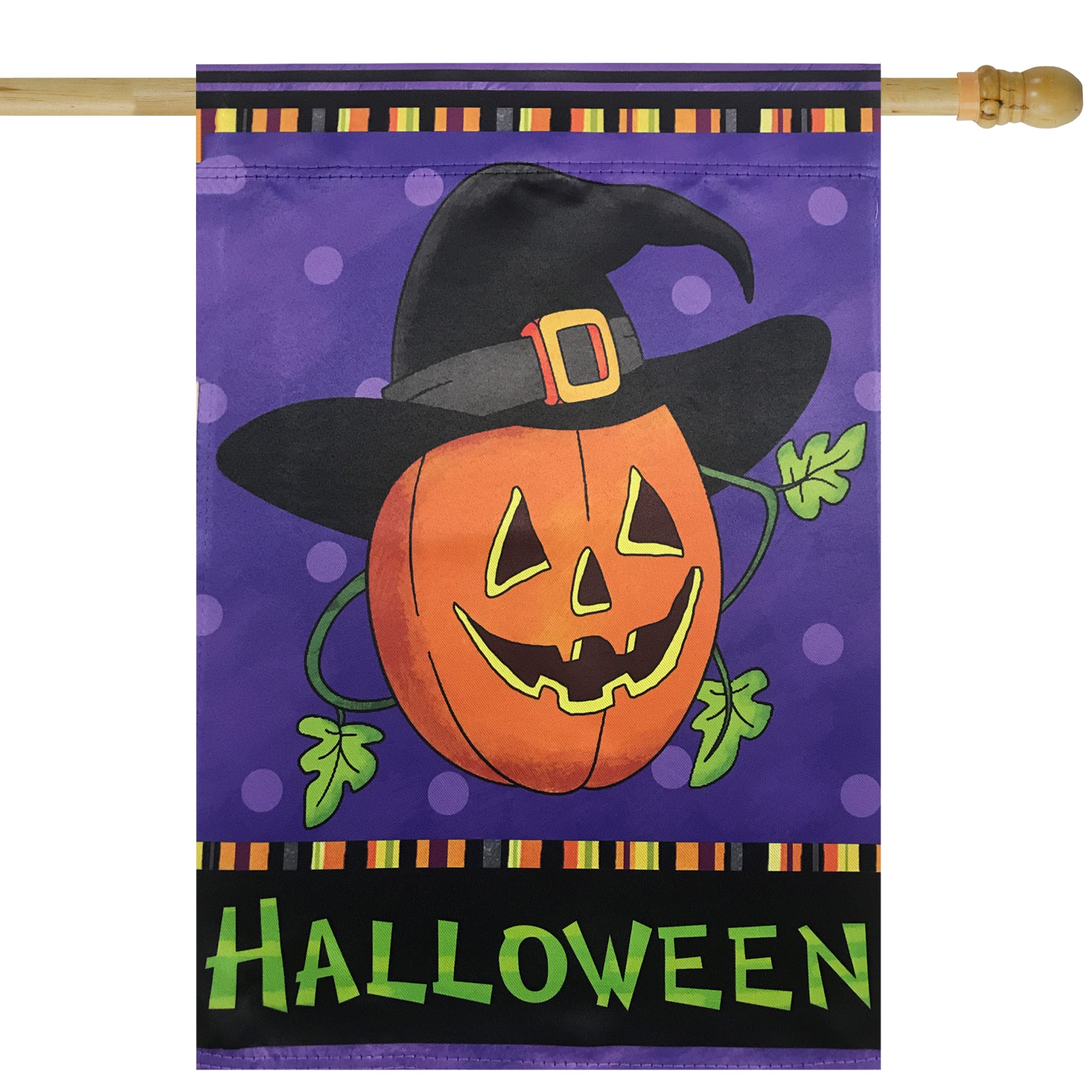 Happy Halloween Pumpkin in a Witch Hat Outdoor Garden Flag, 28" x 40"