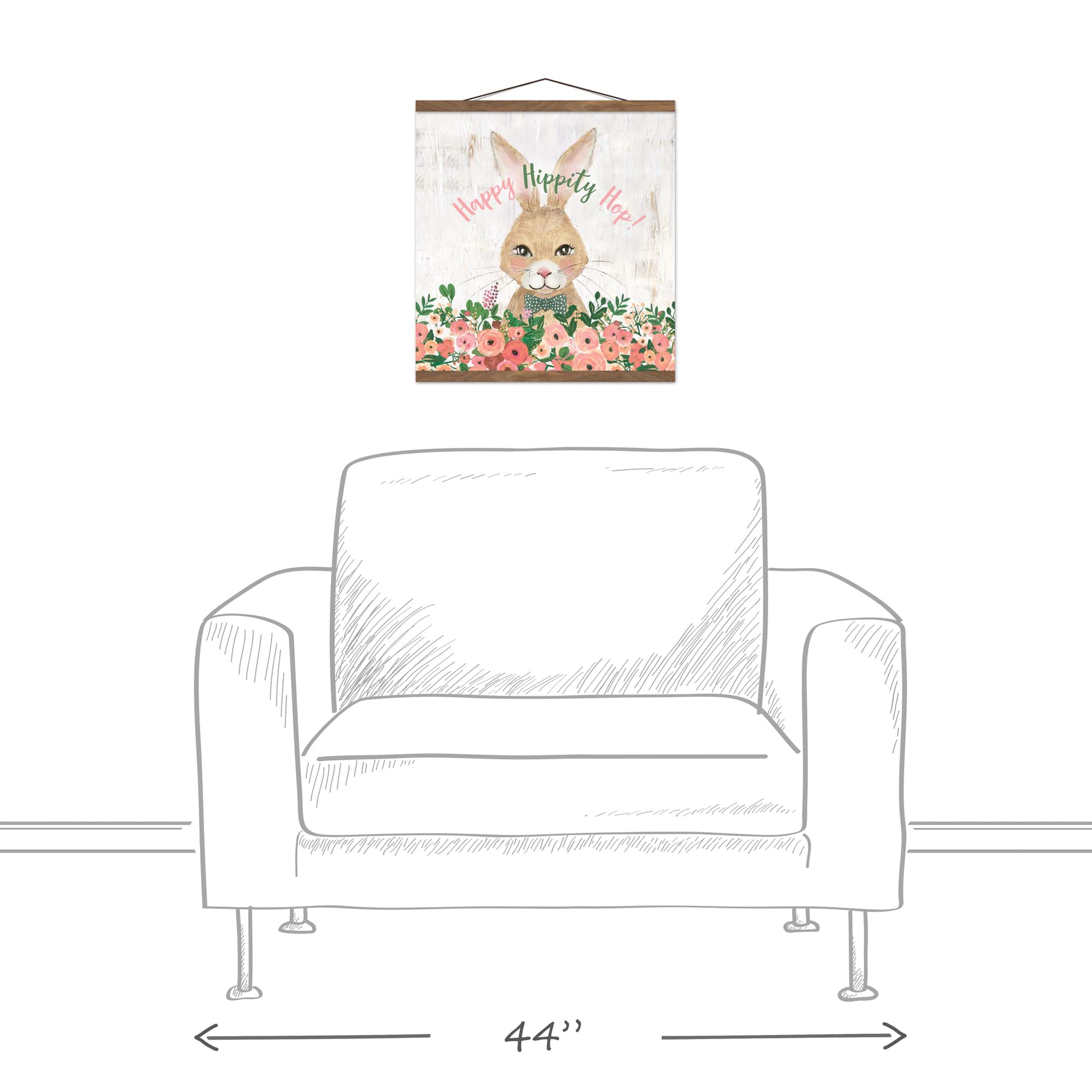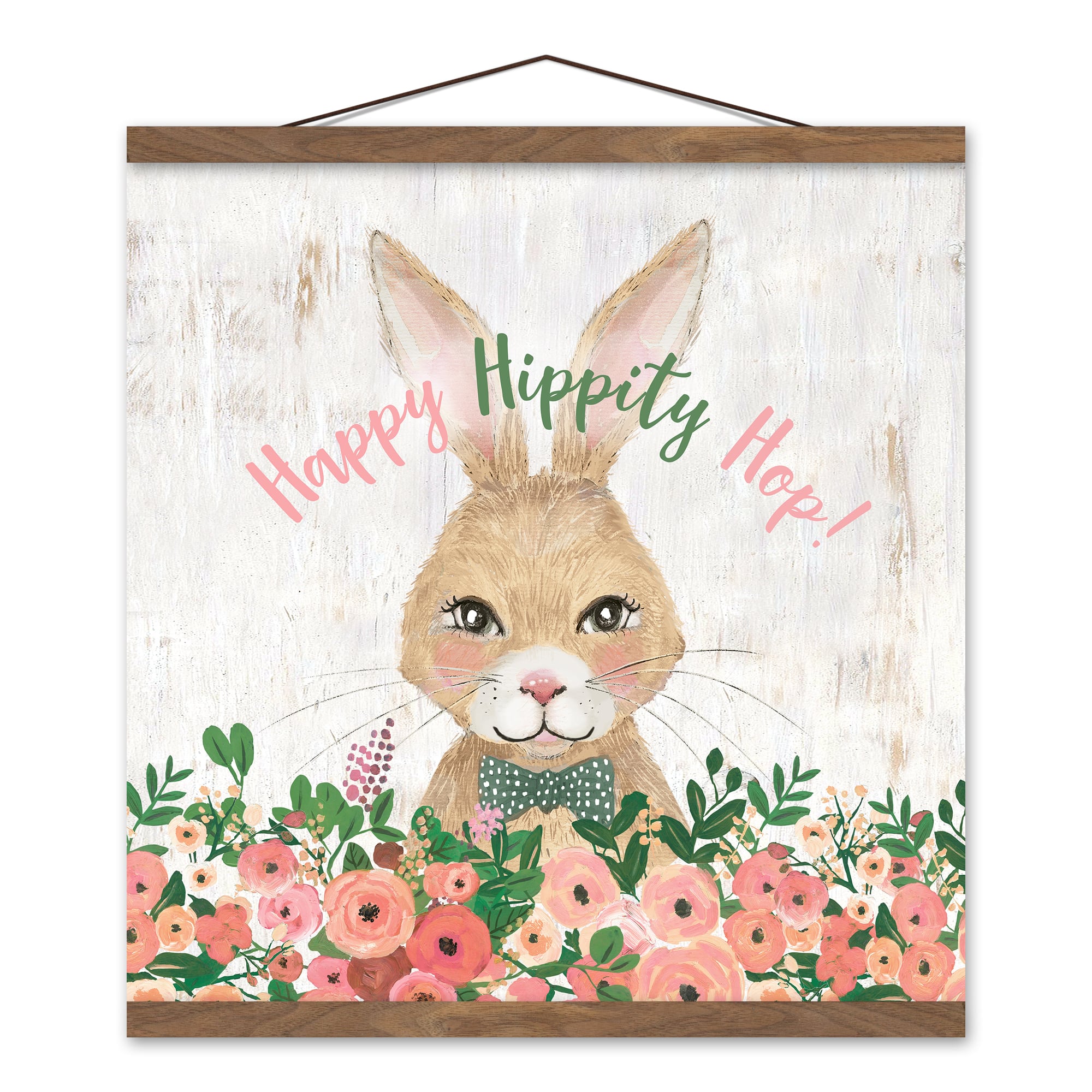 Happy Hippity Hop Bunny Teak Hanging Canvas