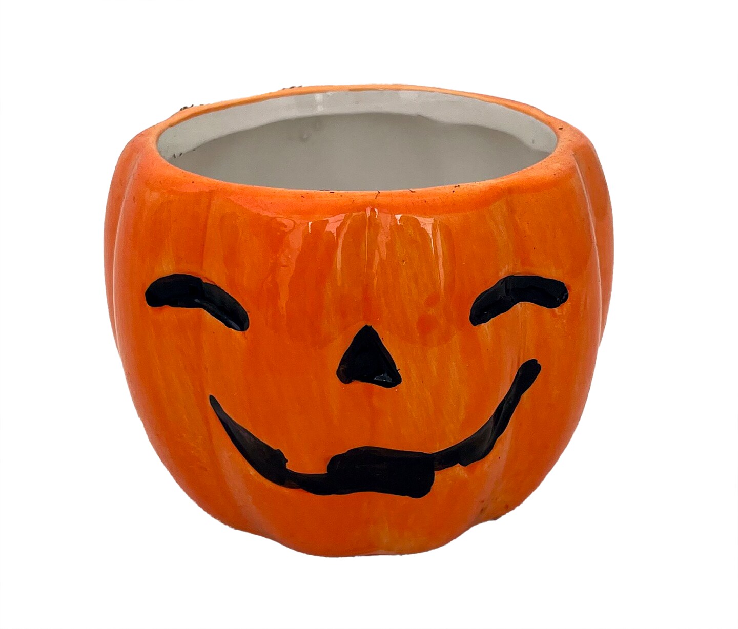Happy Jack o Lantern Ceramic Planter 3" x 3"
