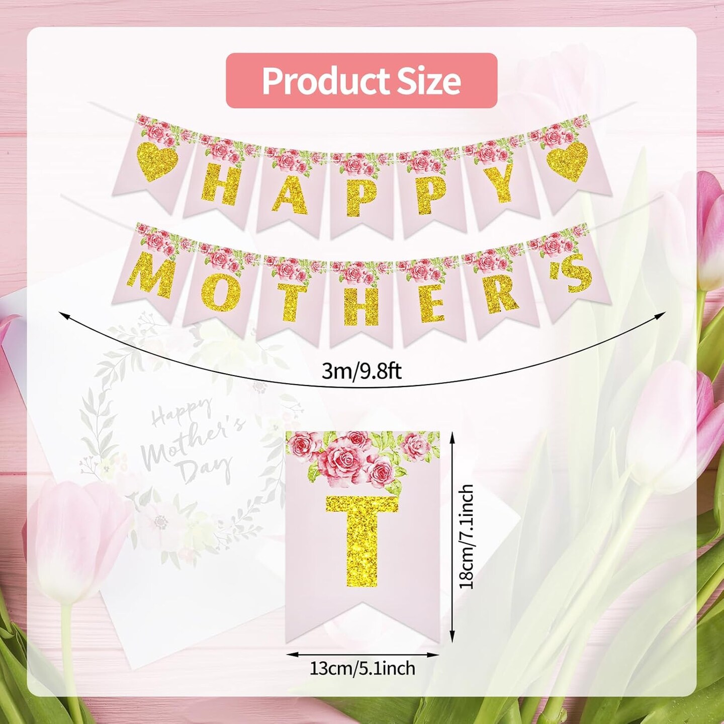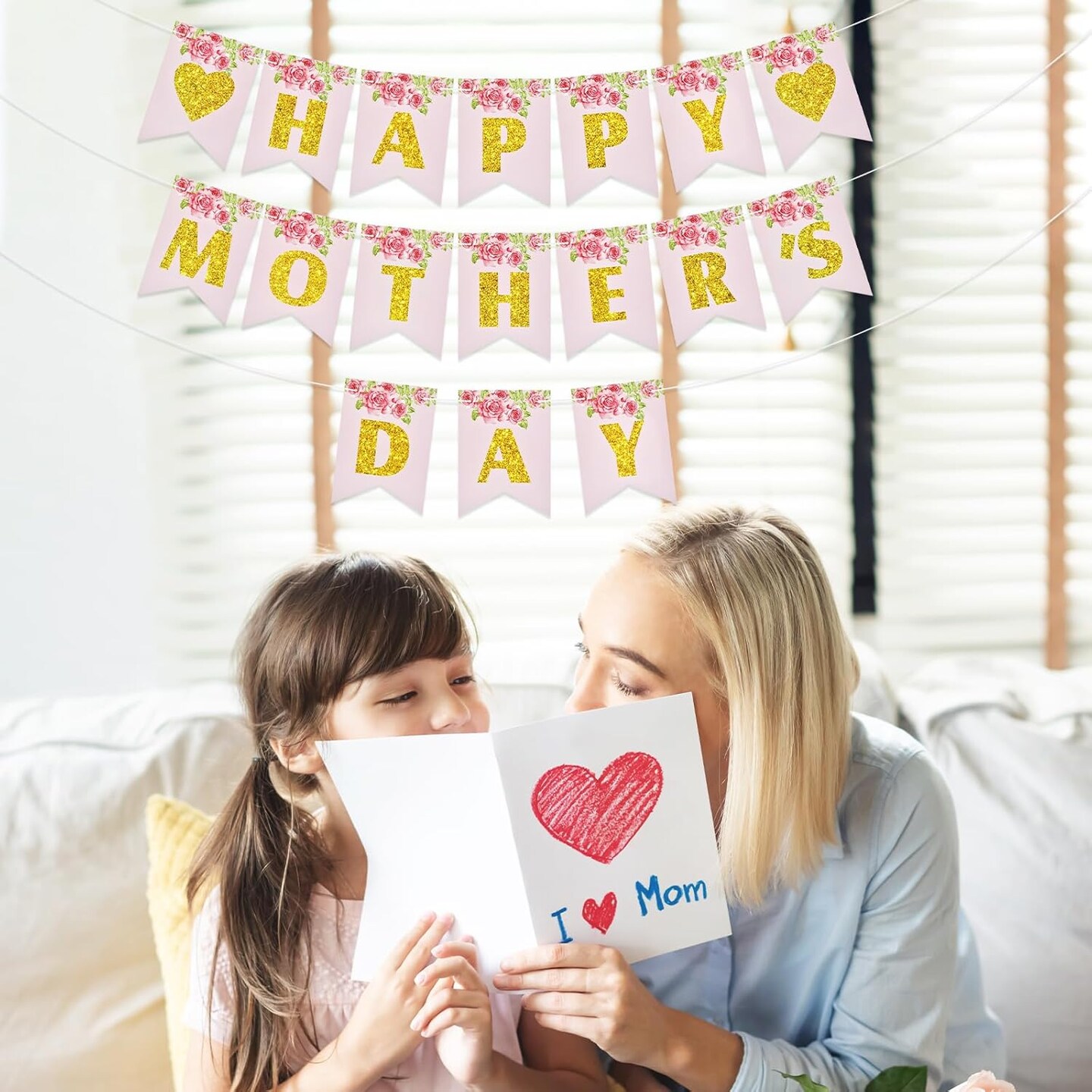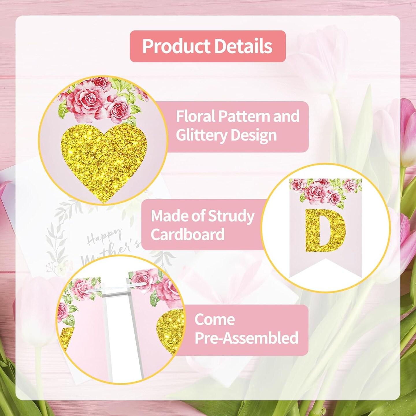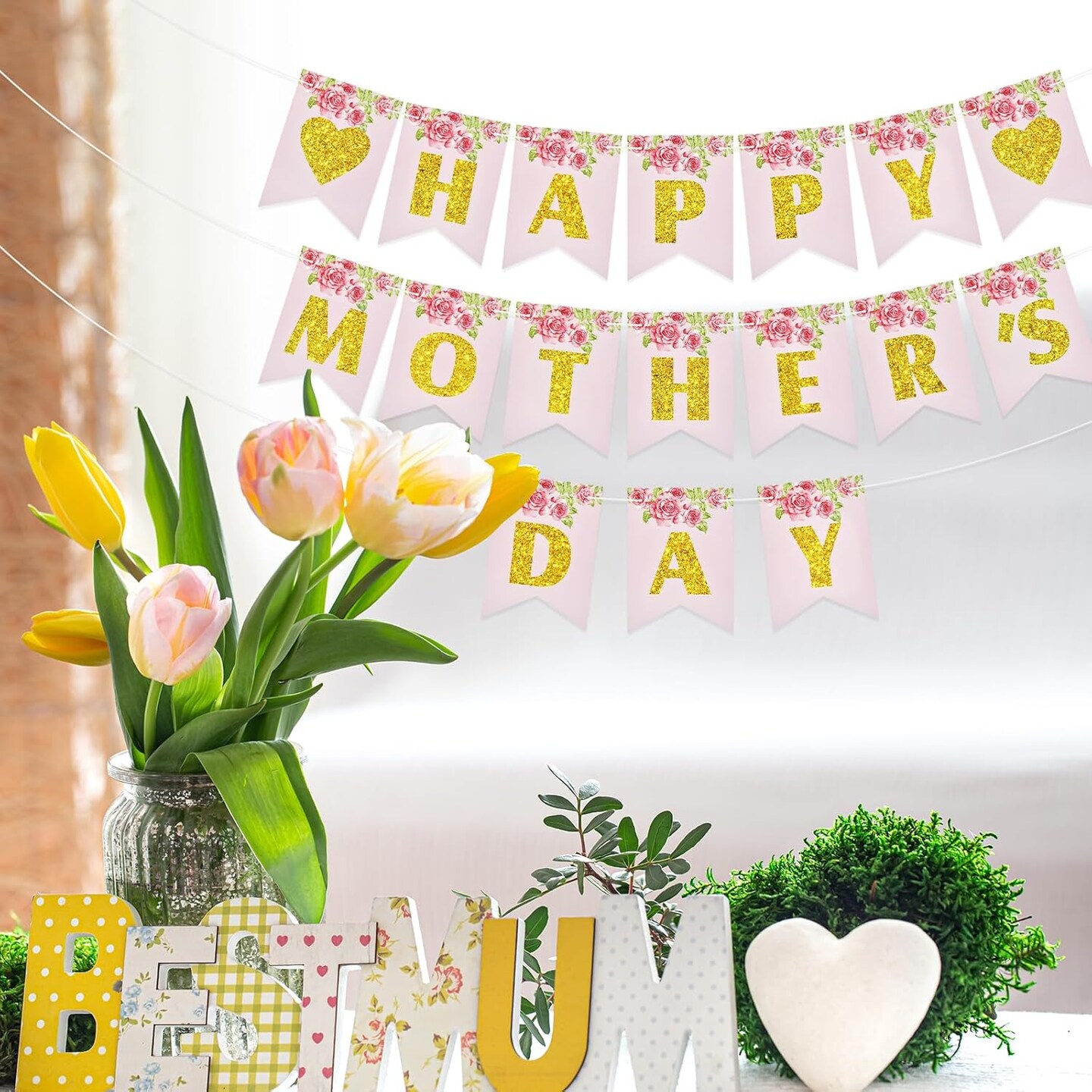 Happy Mother's Day Banner – Floral Garland Bunting, Photo Backdrop & Party Decoration
