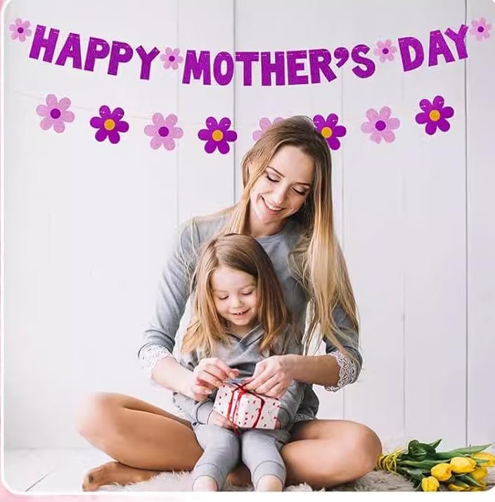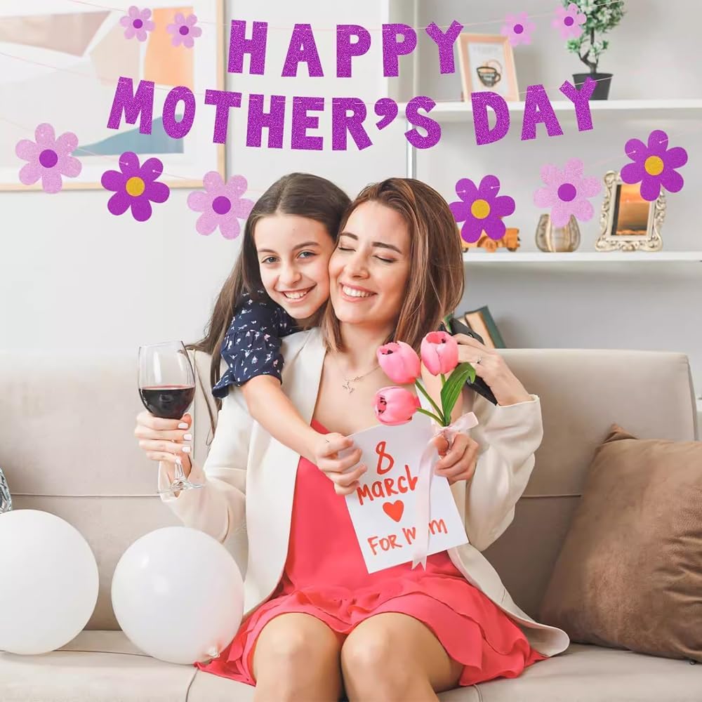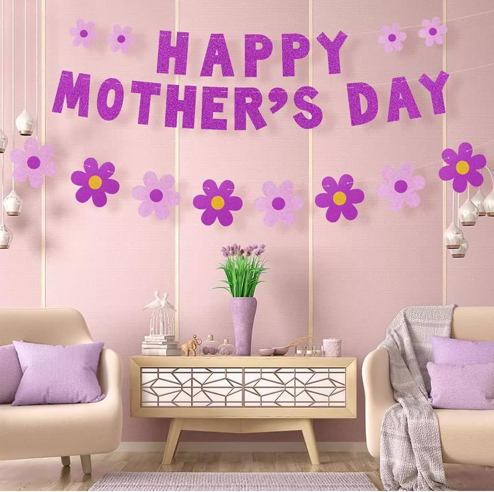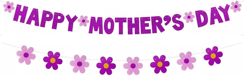 Happy Mother's Day Banner Party Decorations Mothers Day Bunting Banner Garland Thanks Mom Best Mom Ever Signs for Mother's Day Indoor Outdoor Party Decorations