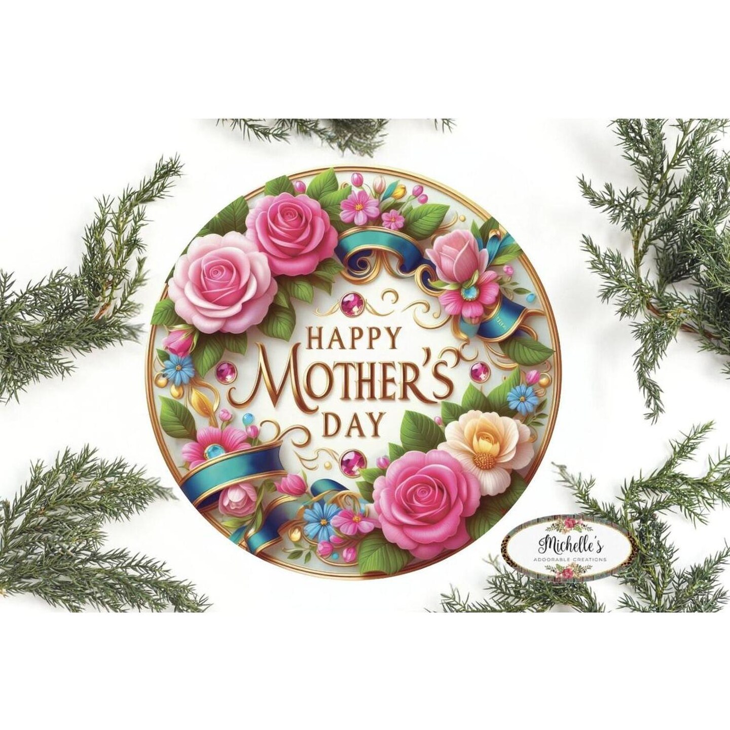 Happy Mother's Day Pink Jewel Round Sign
