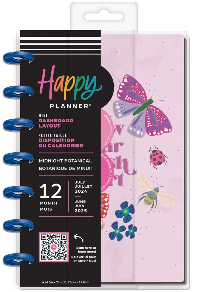 Happy Planner Mini 12-Month Planner-Midnight Botanicals; July '24 - June '25
