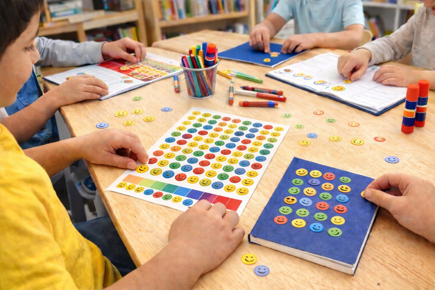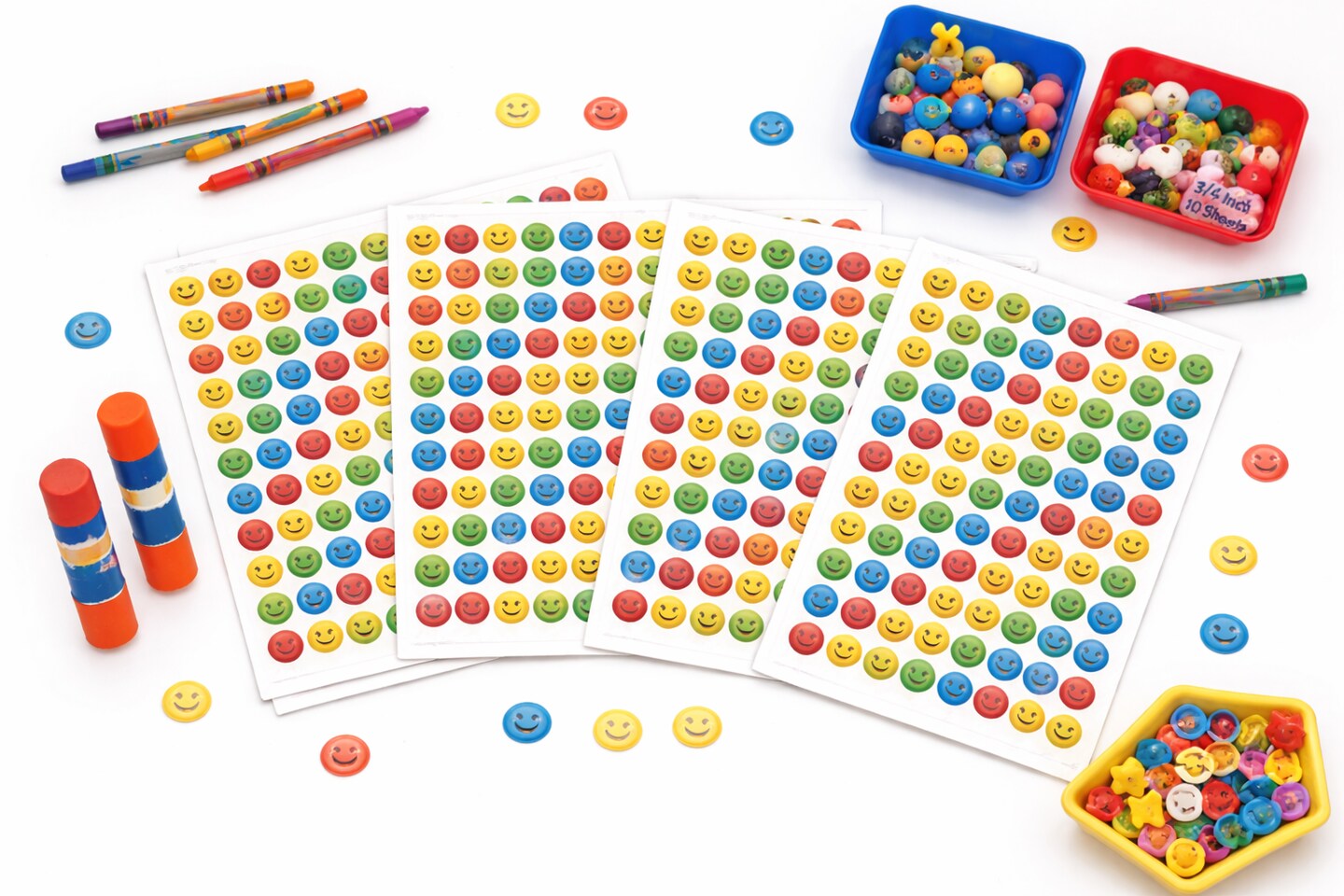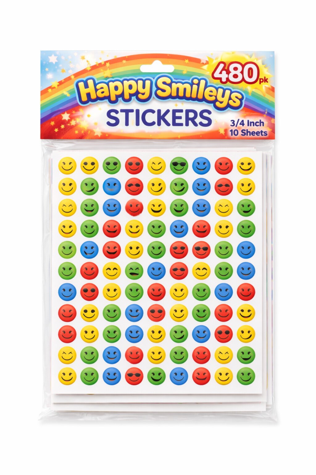 Happy Smileys Stickers 3/4 Inch – 480 Pack Reward Stickers, 10 Sheets for Classrooms & Crafts