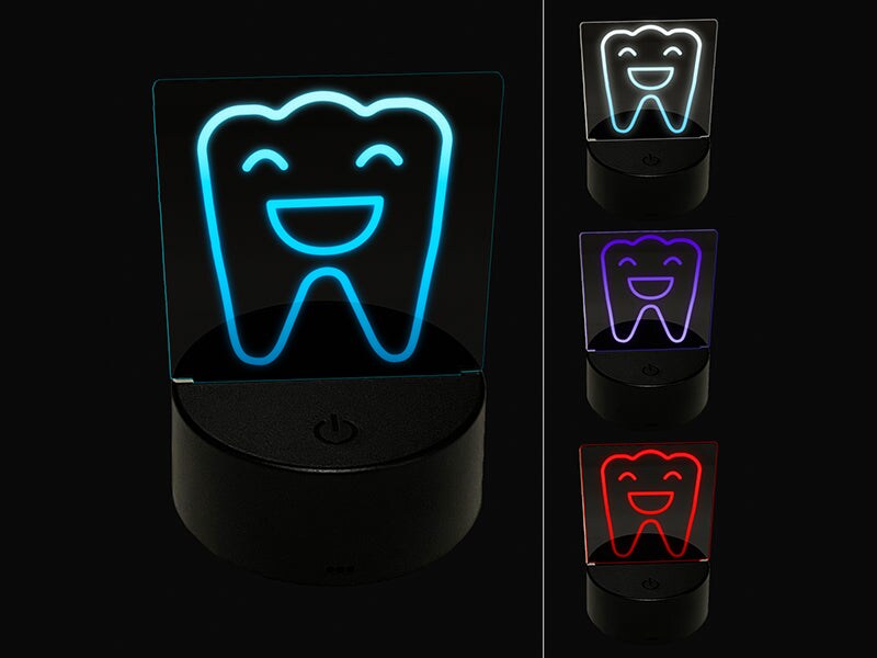 Happy Smiling Tooth Dentist 3D Illusion LED Night Light Sign Nightstand Desk Lamp