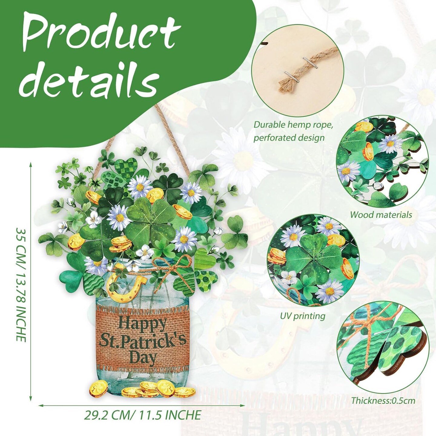 Happy St. Patrick's Day Door sign Patrick's Shamrock Jar Hanging Sign Irish Welcome Door Sign Spring Rustic Wood