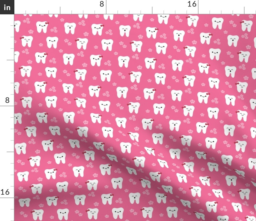 Happy Teeth Flowers Tooth Dental Dentist Cute Kawaii Custom Printed Fabric by Spoonflower Various Fabrics by the Yard or Fat Quarter
