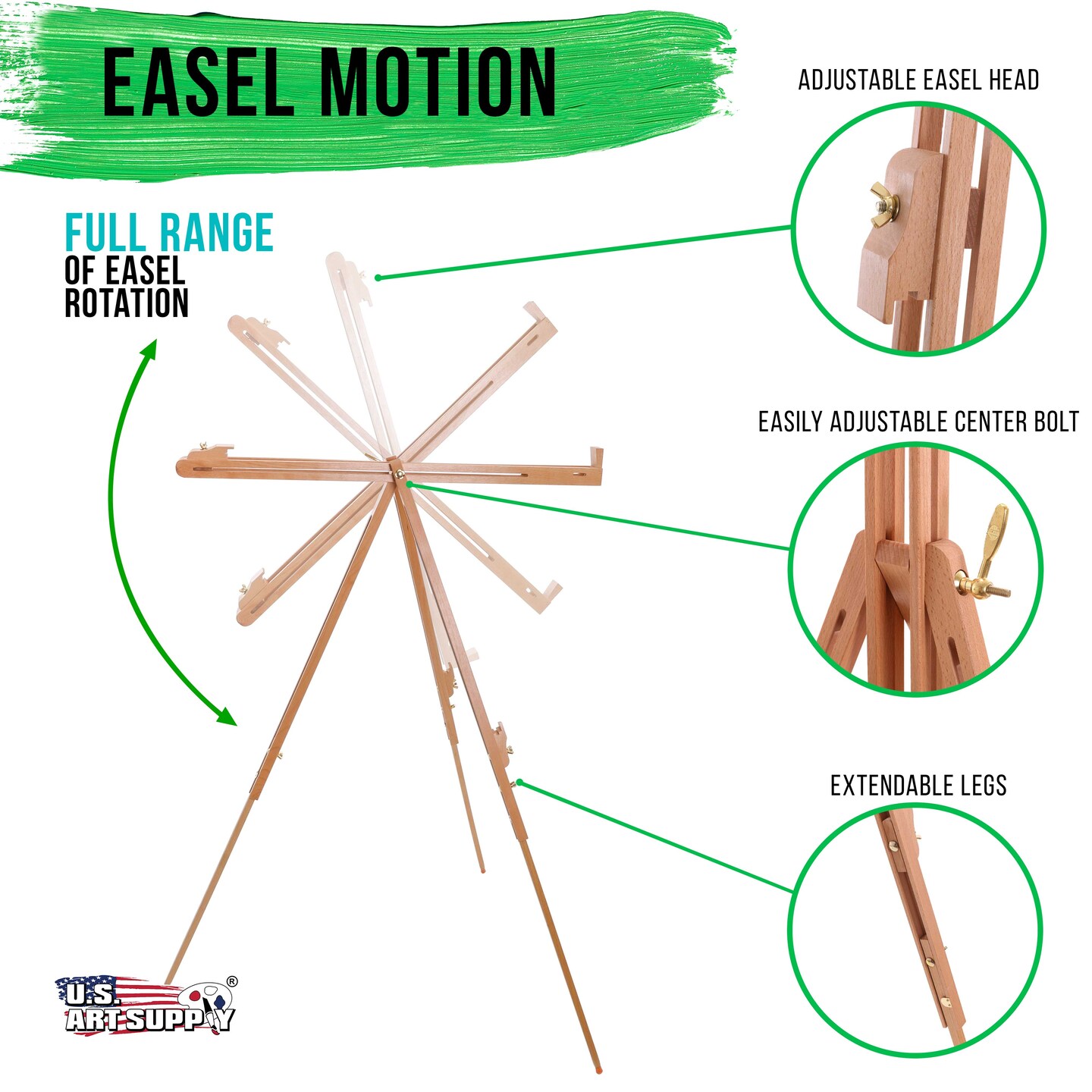 Harbor 72" High Adjustable Wood Artist Easel Stand: Versatile for Watercolor, Field & Display - Portable Tripod for Floor & Tabletop, Holds Canvas Up To 42" Vertical, 28" Horizontal