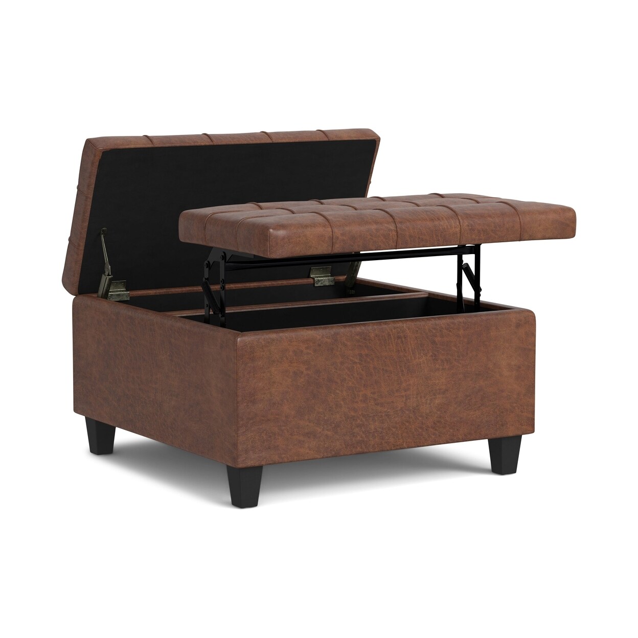 Harrison Small Square Coffee Table Storage Ottoman Distressed Vegan Leather