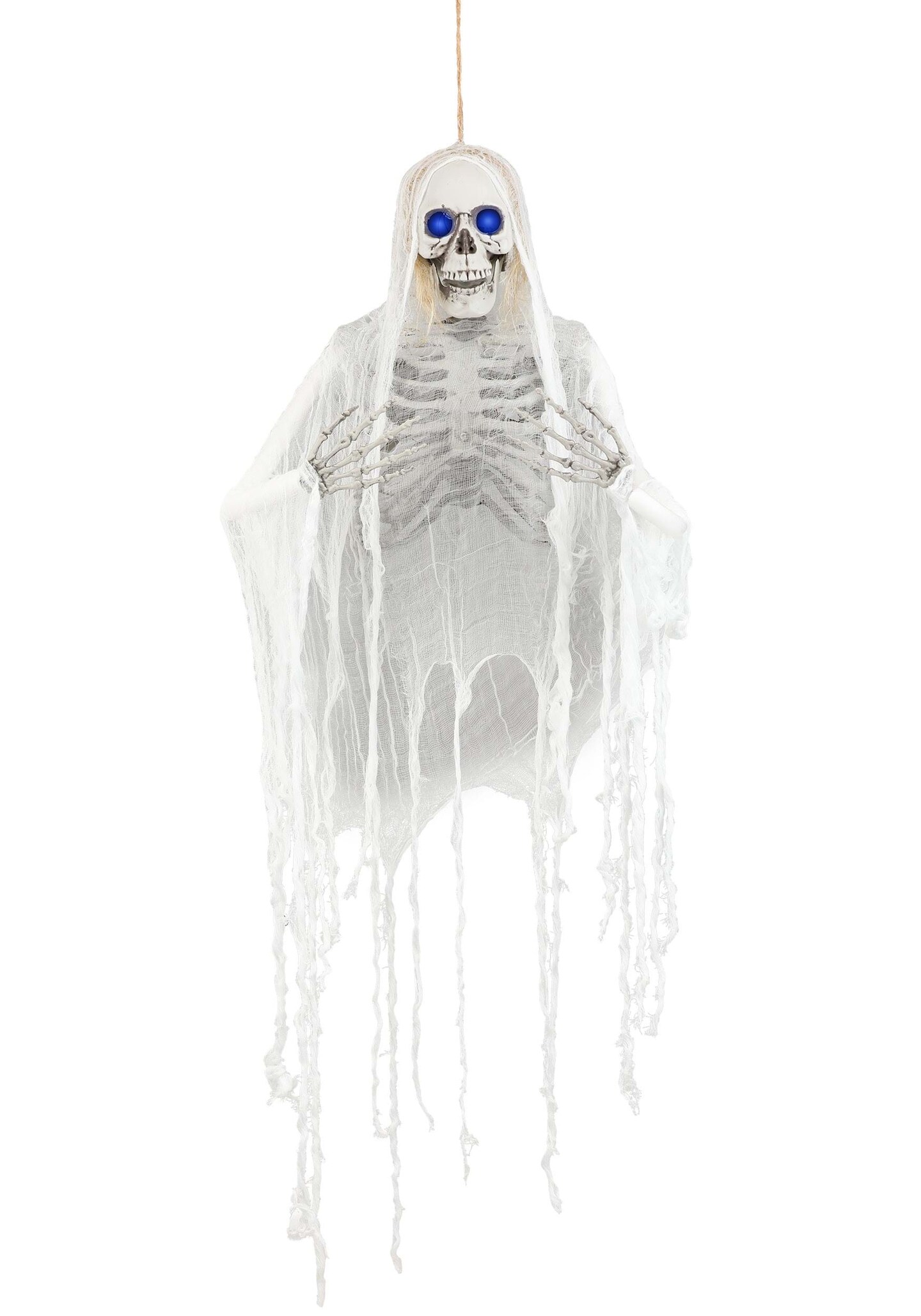 Haunted Hanging Skeleton with Light Up Blue Eyes Prop