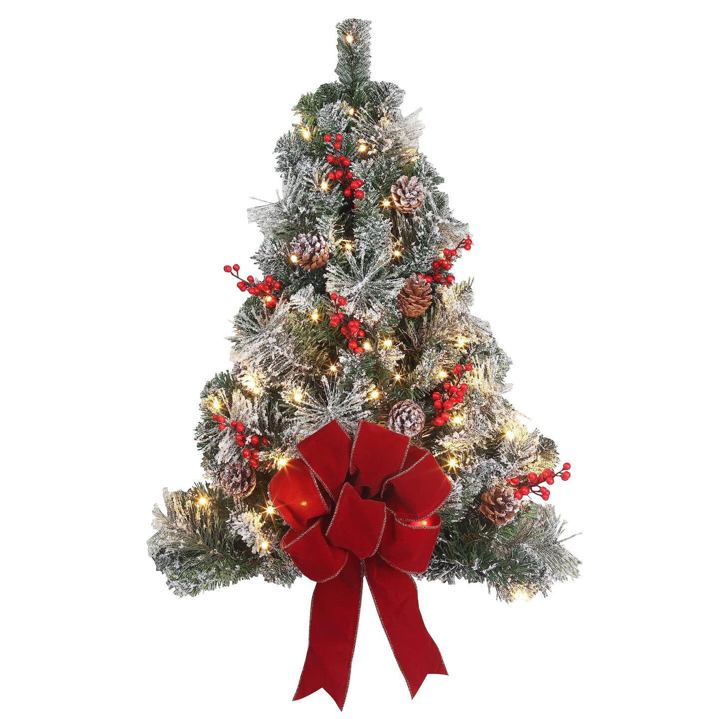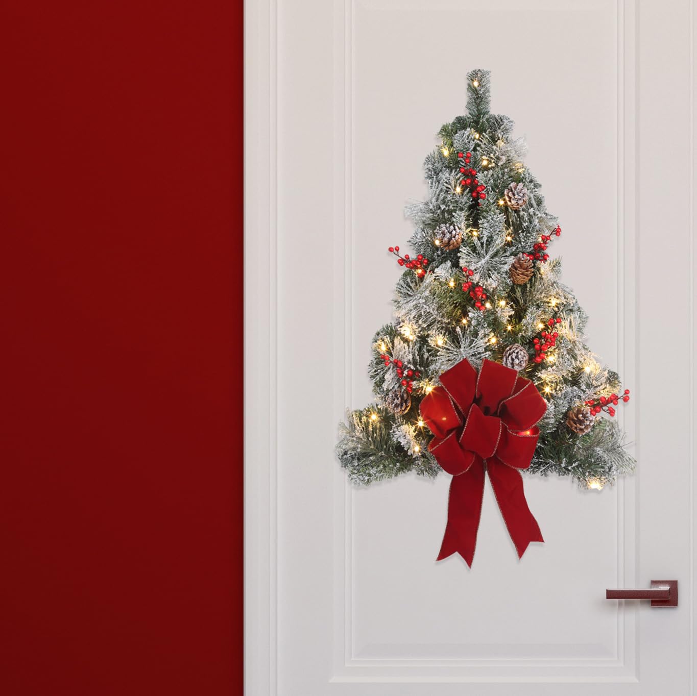 Haute Decor 28 Inch Flocked Pre-lit Christmas Wall Tree and Front Door Decor with 50 Soft White LED Lights and Built-in Timer