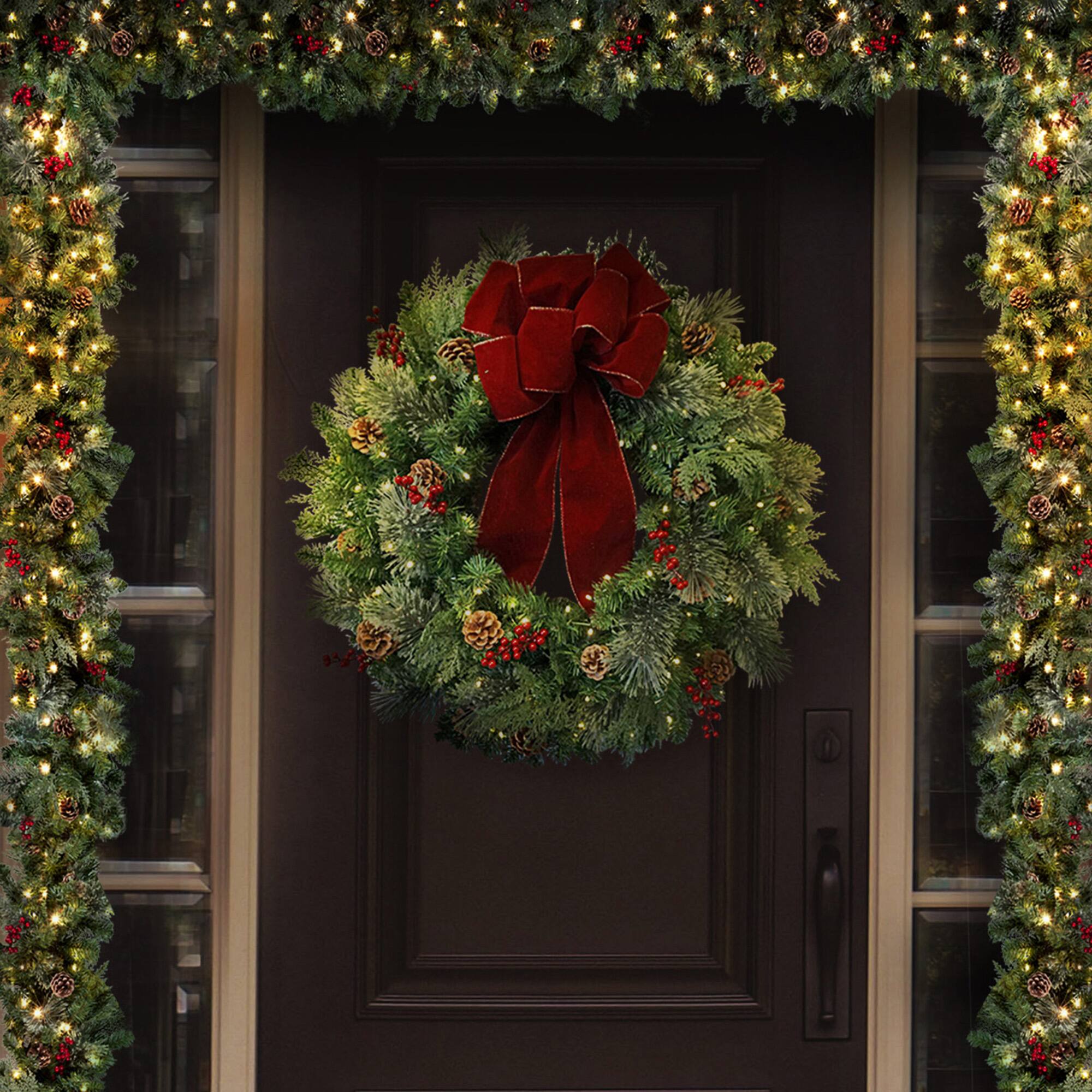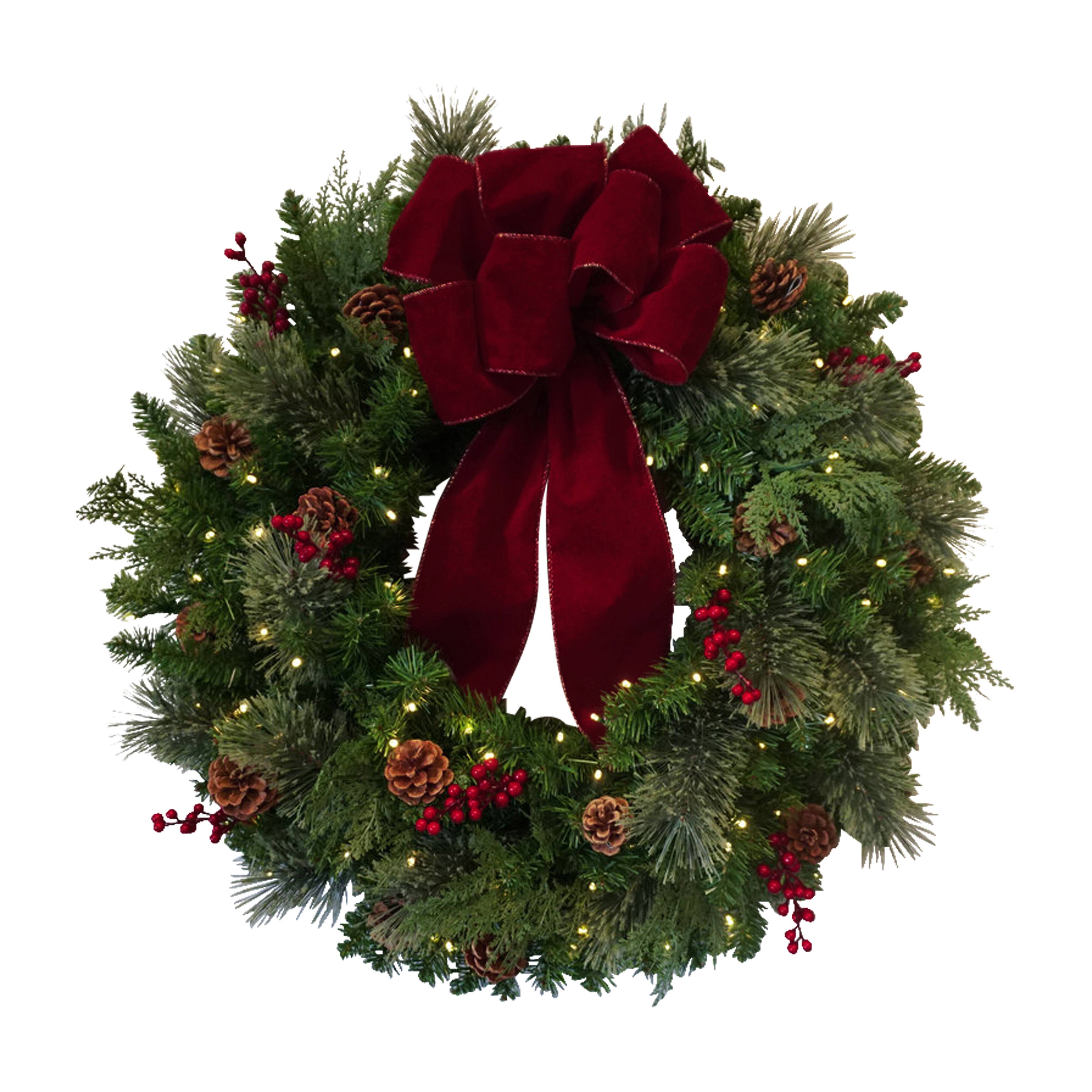 Haute Decor 30" Pre-Lit Berry & Pinecone Classic Christmas Wreath, Warm White LED Lights