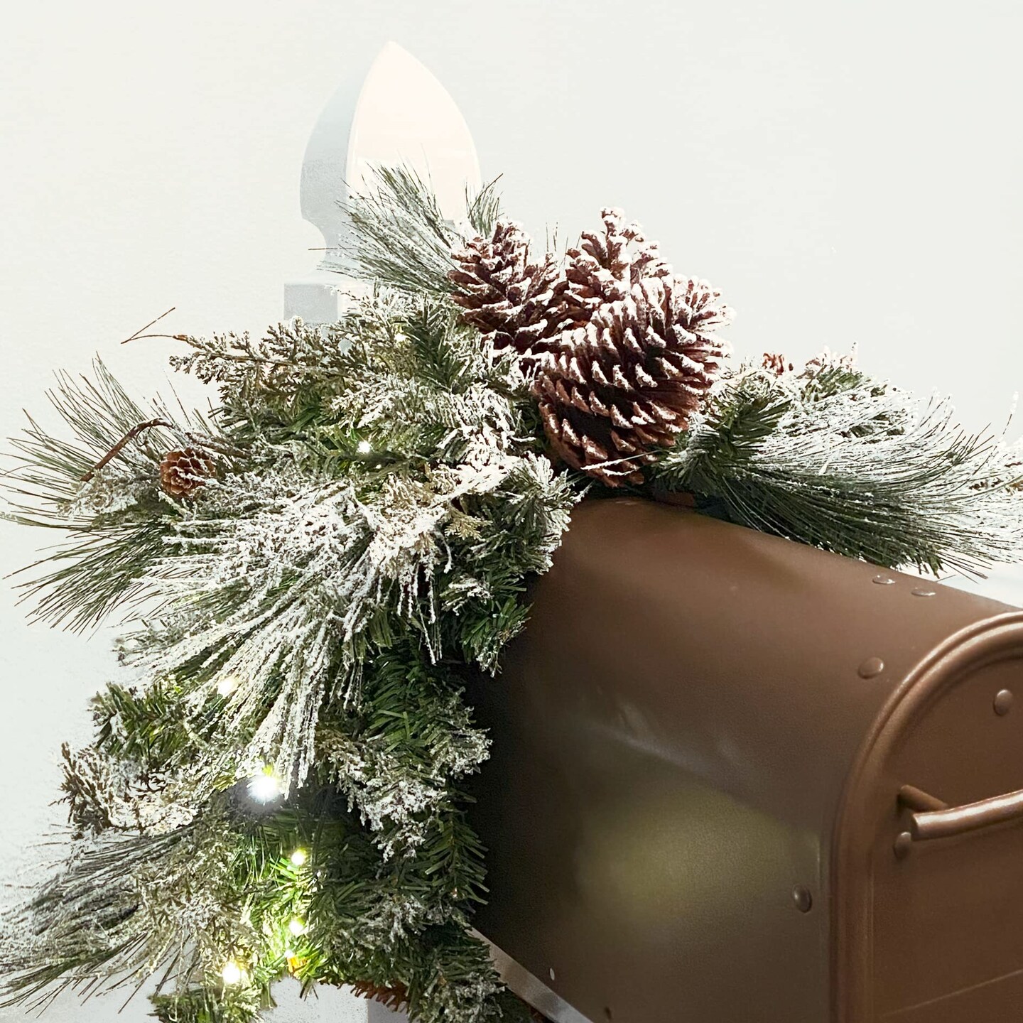 Haute Decor 36 Inch Snowfall Creek Mailbox Swag - PRELIT 30 Battery Operated Energy Efficient LED Lights with Auto On-Off Timer - for Christmas and Winter Holidays