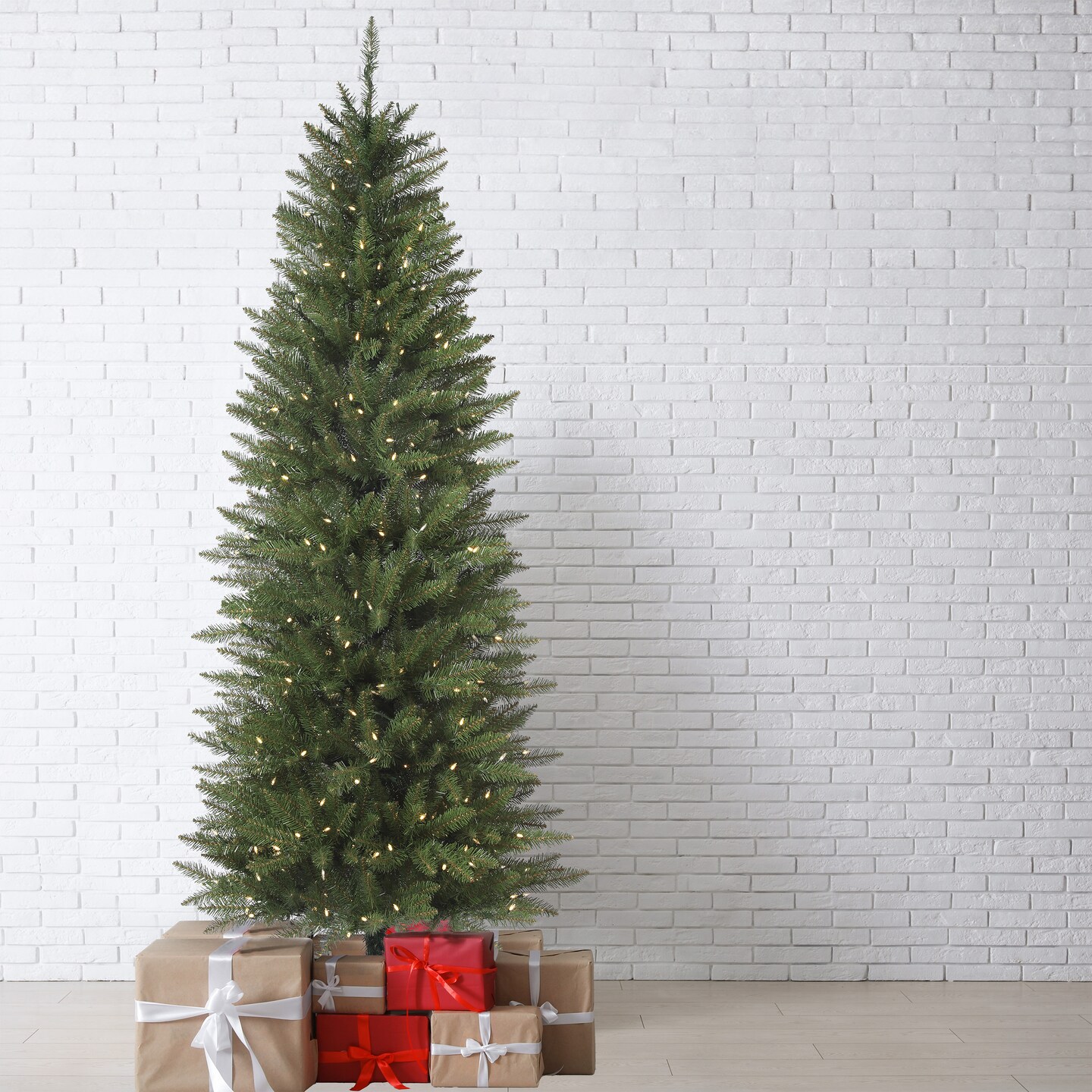 Haute Decor 6.5 Ft. Tall Dumont Slim Christmas Tree with Soft White T5 LED Lights and Foot Pedal Control - Tall & Slim Artificial Christmas Tree
