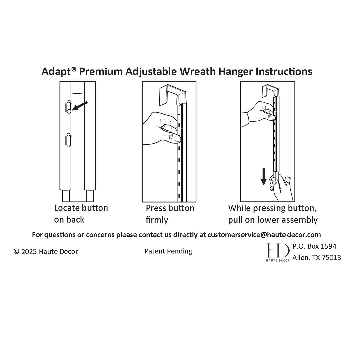 Haute Decor Adapt Adjustable Wreath Hanger, Premium Length Adjustable - Strong Over the Door Wreath Hanger, Holds up to 30 pounds (Matte White)