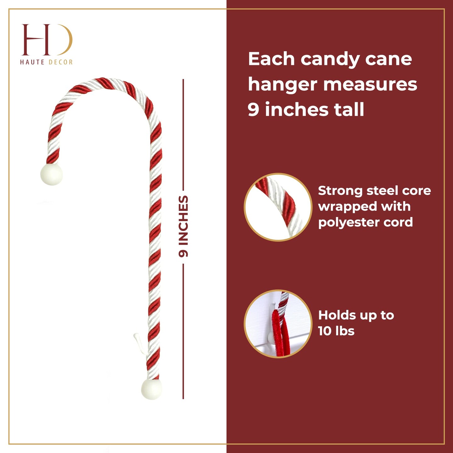 Haute Decor Candy Cane Stocking Holder (Classic 2-Pack) - Hang Your Christmas Stockings in Style - Lightweight Yet Holds Up to 10 Lbs