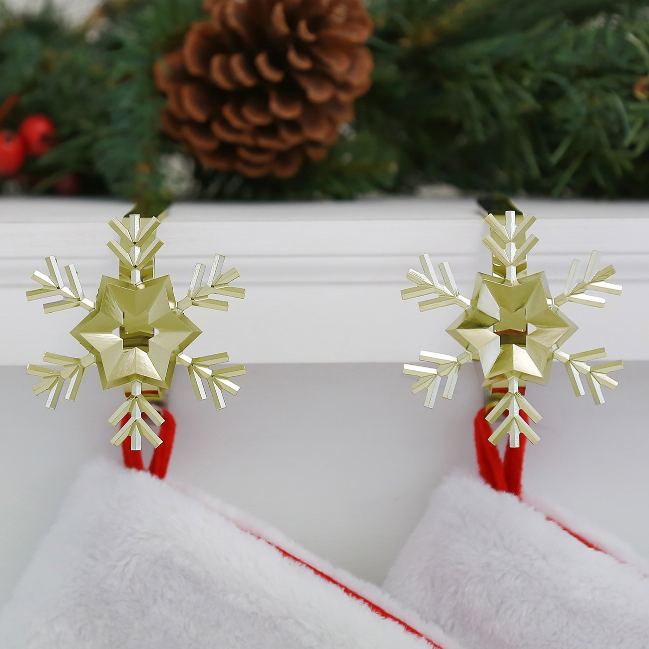 Haute Decor MantleClip Stocking Holders with Removable ZINC Alloy/Winter and Christmas Holiday Icons (2-Pack Snowflake)