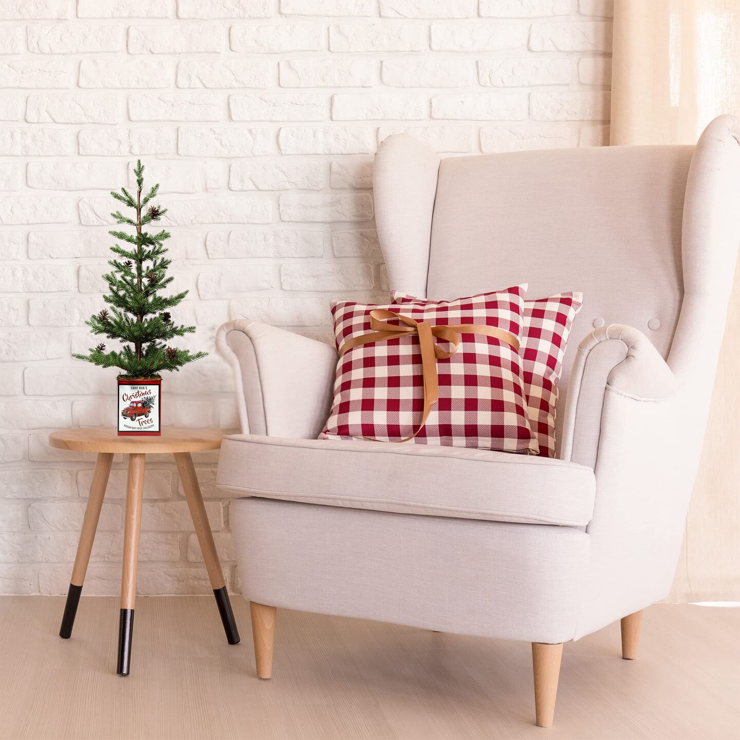 Haute Decor Potted Unlit Tree with Pinecones, 2 Feet Tall, 4 inch Red Metal Pot with Classic Truck Design