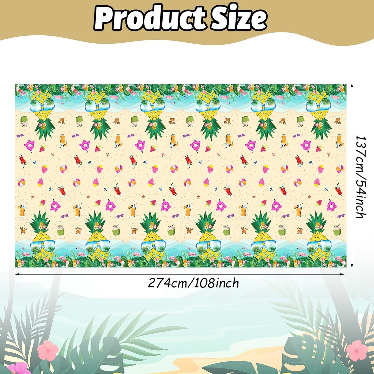 Hawaii Cloth With Pineapples and Flamingos - Plastic Tropical Luau Tablecloth