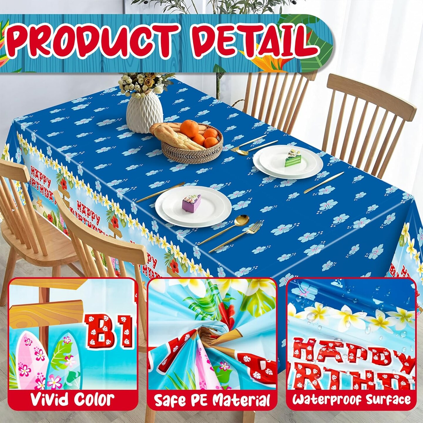 Hawaii Tablecloth Covers Decorations - 3pcs Cartoon Themed Table Cloths