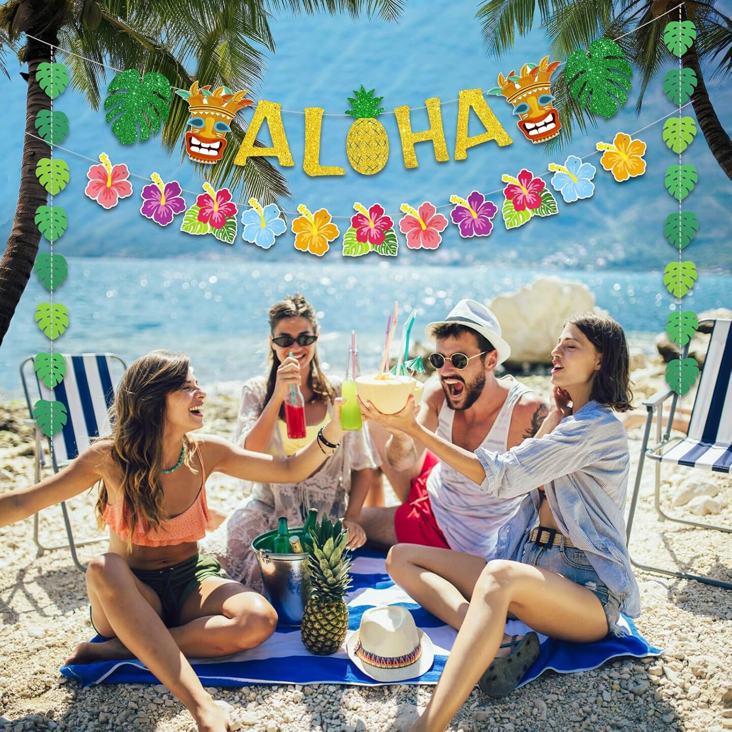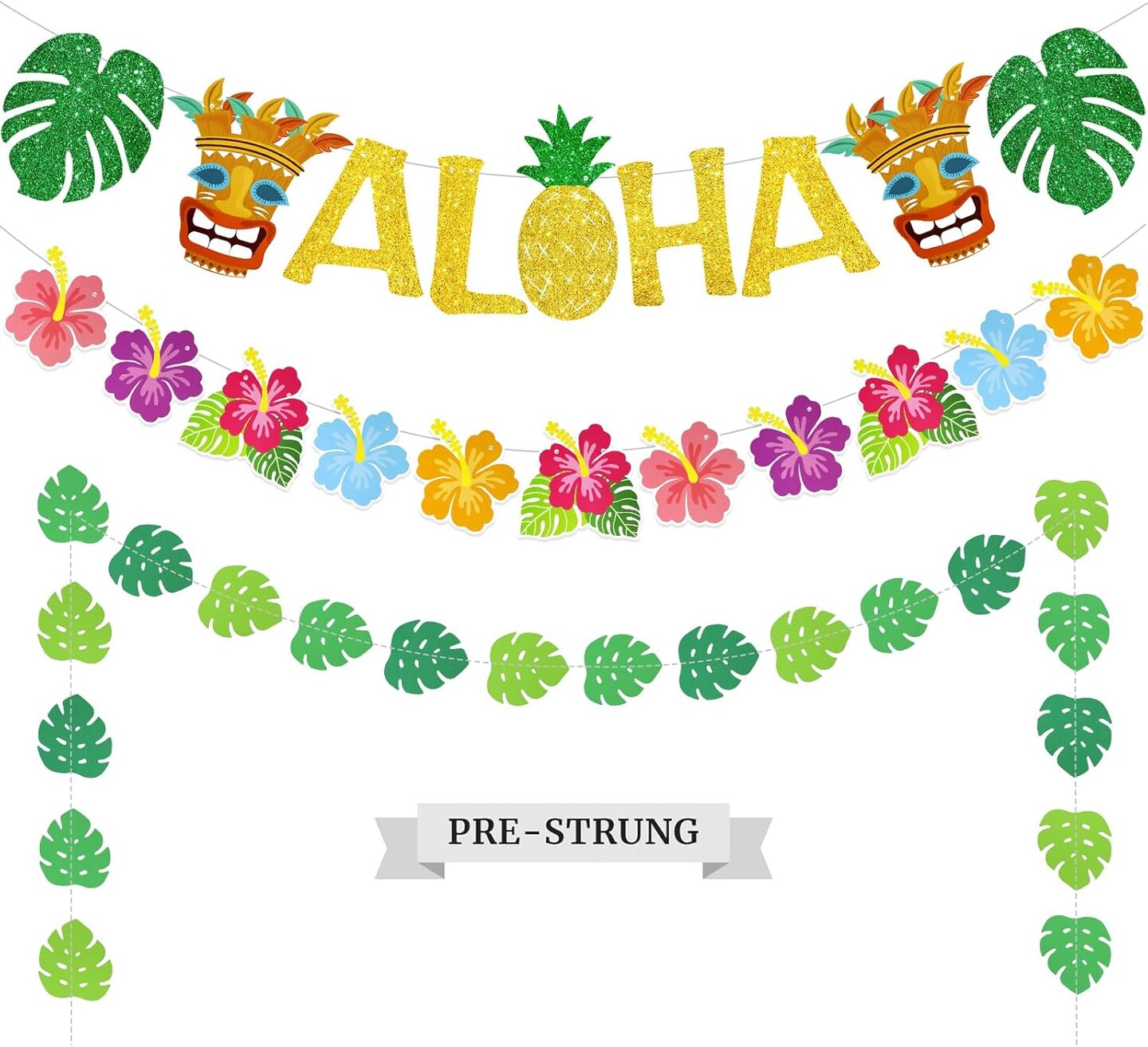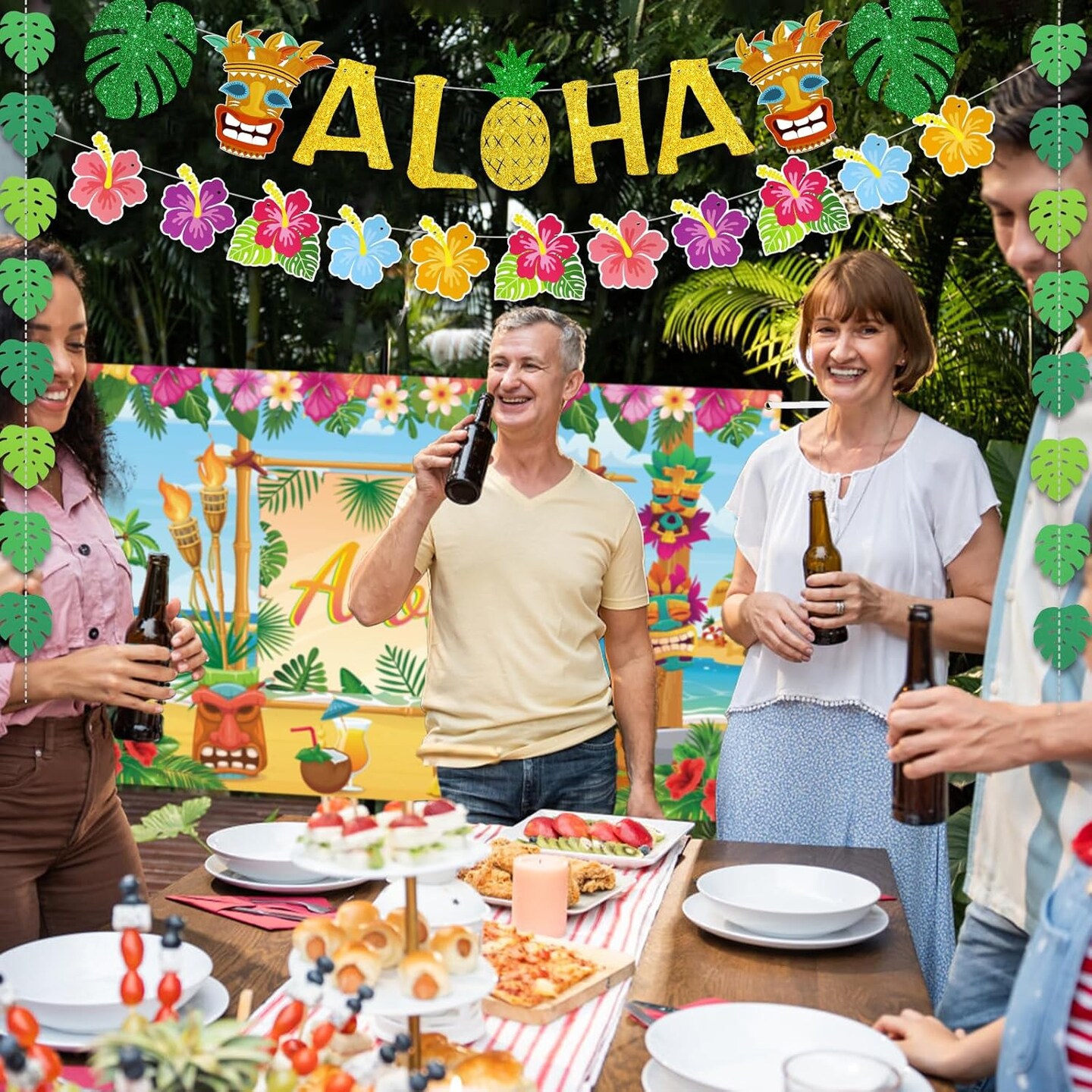 Hawaiian Aloha Party Banner Decorations, Pre-Strung Luau Banner Sign, NO-DIY Aloha Banner for Tropical Hawaiian Luau Tiki Summer Aloha Party Beach Pool Birthday Supplies Decorations