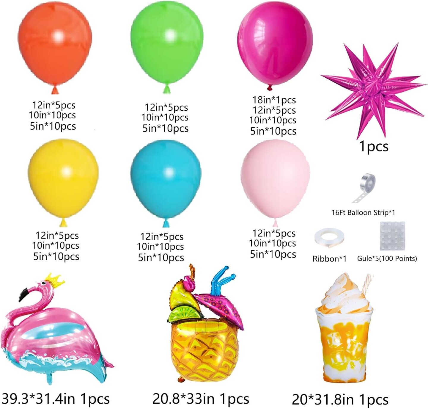 Hawaiian Balloon Arch Kit with 151 Latex Balloons & 4 Foil Balloons