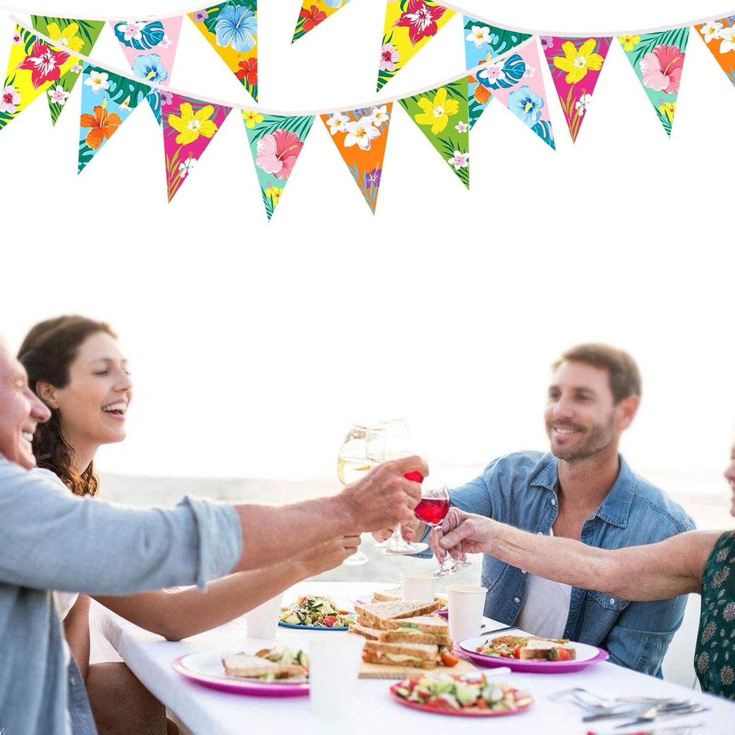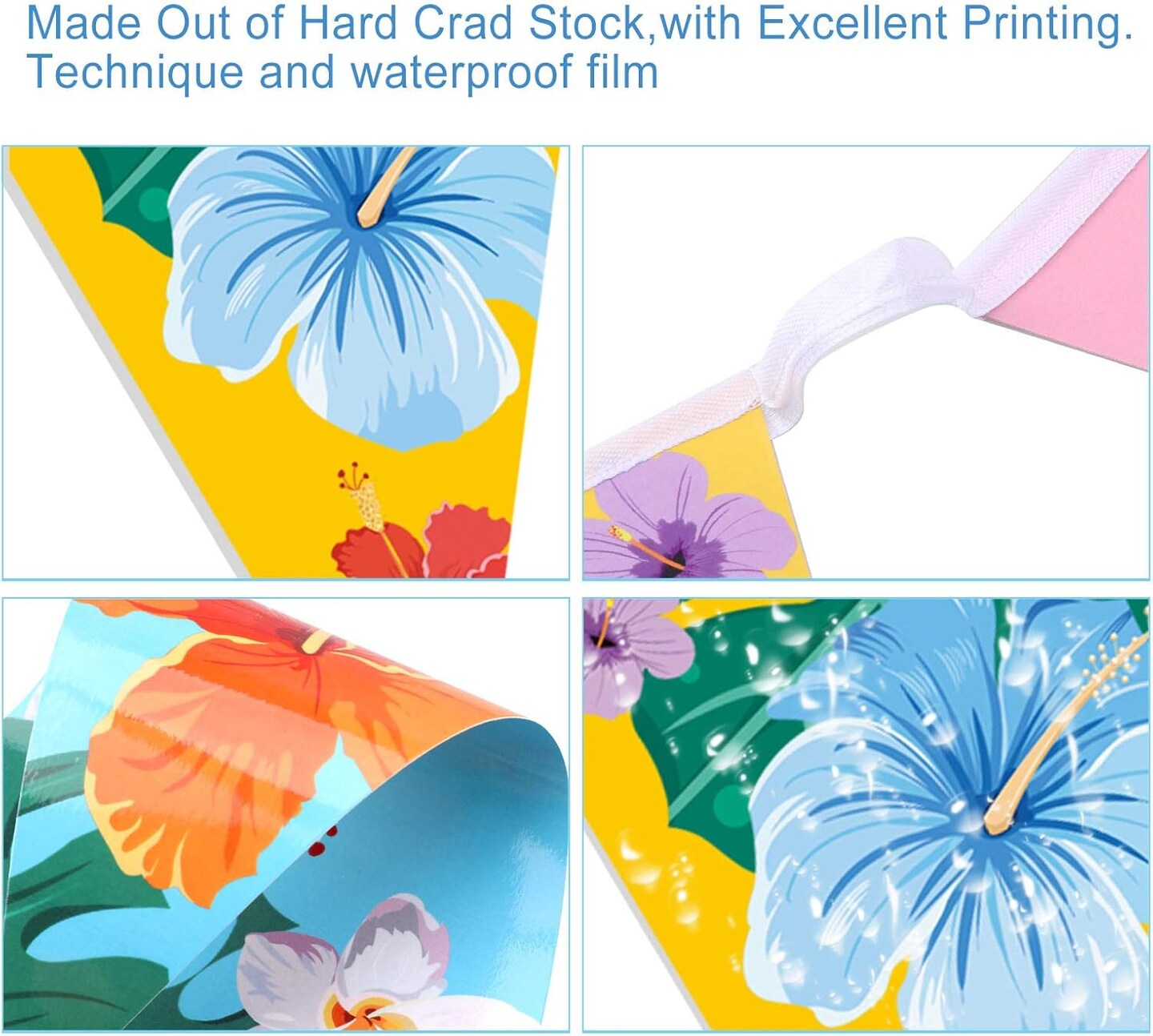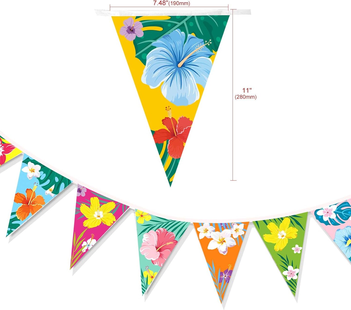 Hawaiian Bunting Banner Luau Tropical Party Bunting Hibiscus Yarn Bunting Flag Triangle Banner for Indoor Outdoor Summer Luau Tiki Pool Cocktail Beach Birthday Party Decoration Supplies