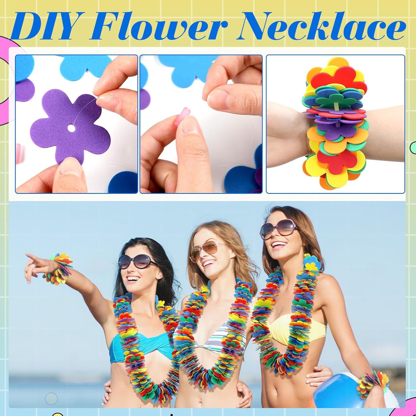 Hawaiian Lei Making Craft Kit Makes 24 Foam Flower Necklace EVA Flower Shape Foam for Party Decoration