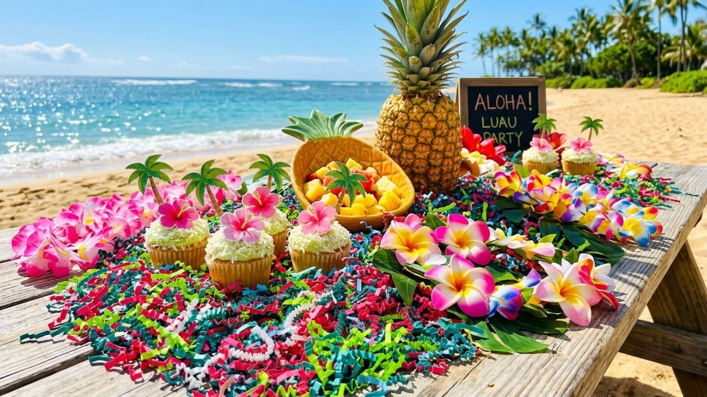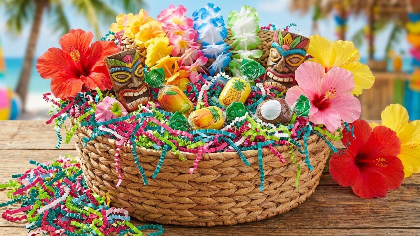 Hawaiian Luau Crinkle Paper Shred 1 lb Tropical Gift Easter Grass Basket Filler – Decorative Paper Filler for Gift Baskets, Party Favor Boxes, Candy Tables & Luau Party Decorations