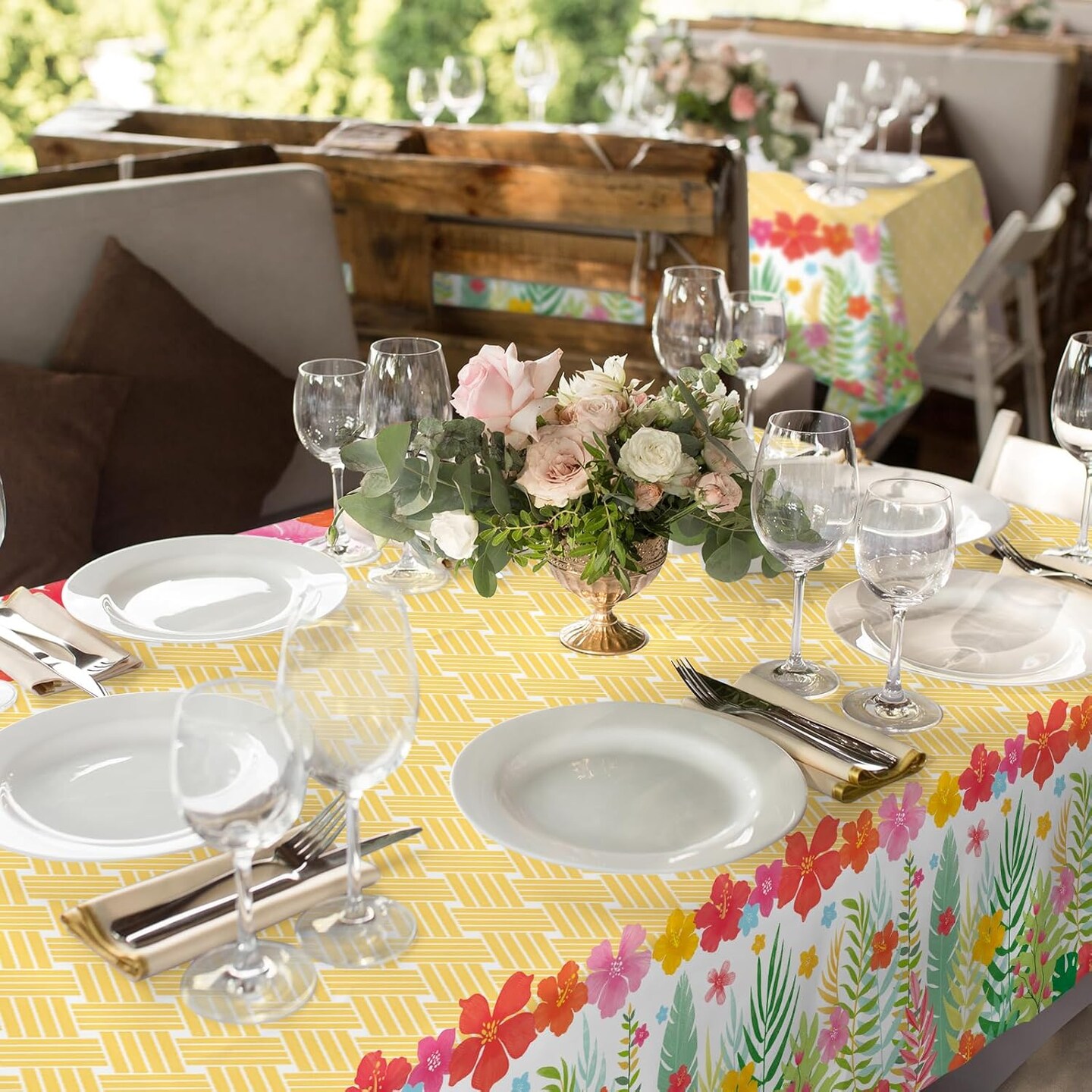 Hawaiian Luau Party Supplies Set - Includes 2 Aloha-Themed Disposable Plastic Tablecloths