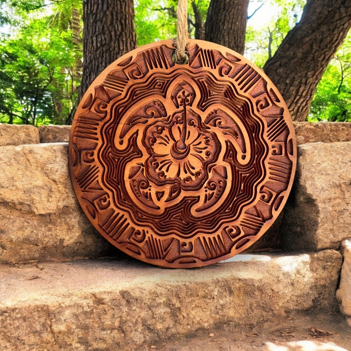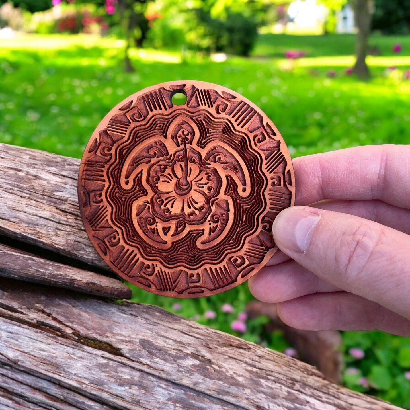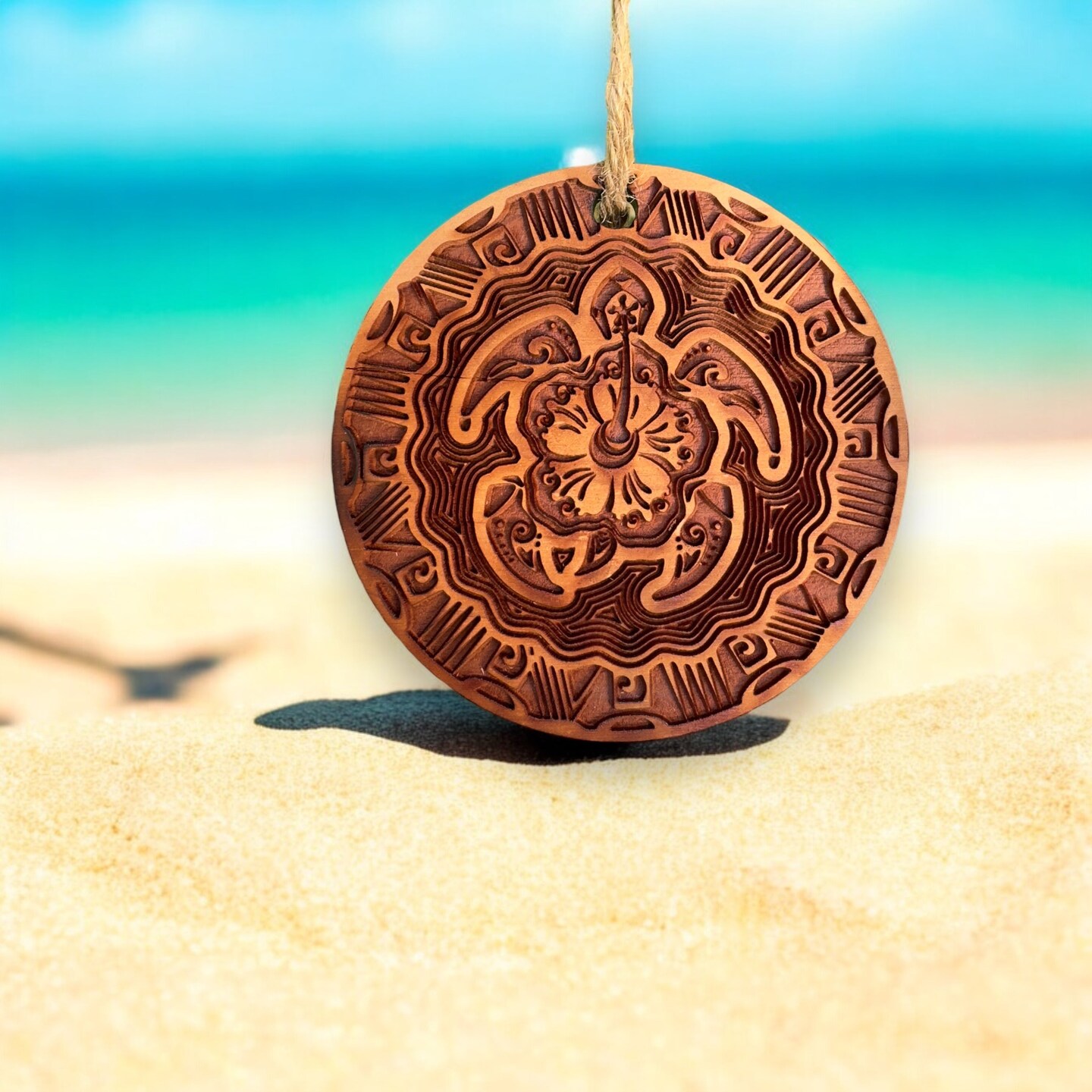 Hawaiian Turtle - Raw Cedar Ornament 3x3in