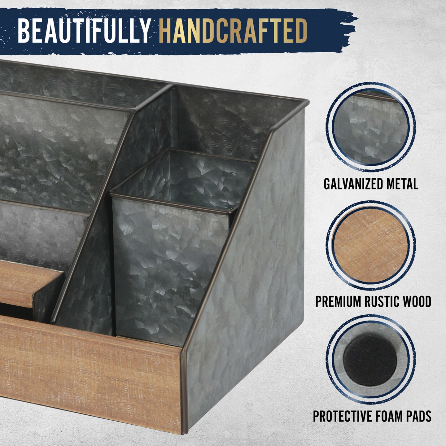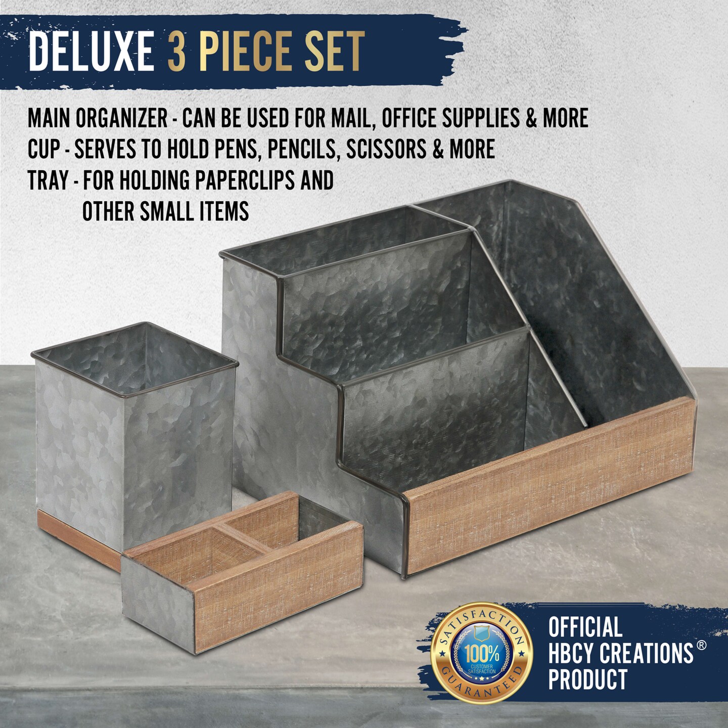 HBCY Creations 3 PIECE Desk Organizer Set- Rustic Mail Organizer For Desktop - Great For Rustic or Industrial Decor! Makeup Organizer For Vanity