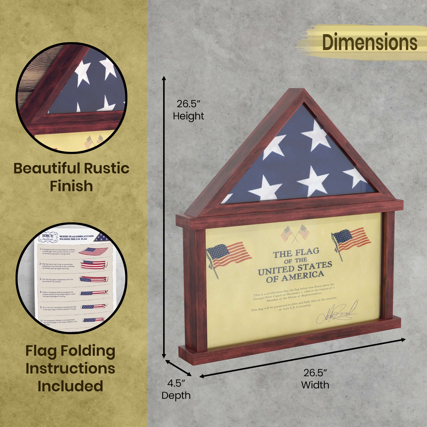 HBCY Creations Memorial Flag, Certificate And Shadow Box Display Case Small - Solid Wood
