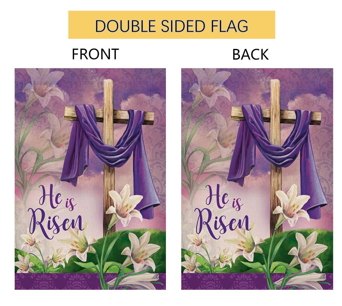 He is Risen Spring Easter Small Garden Flag Vertical Double Sided Burlap Welcome Farmhouse Yard Outdoor Decoration 12 x 18 Inches