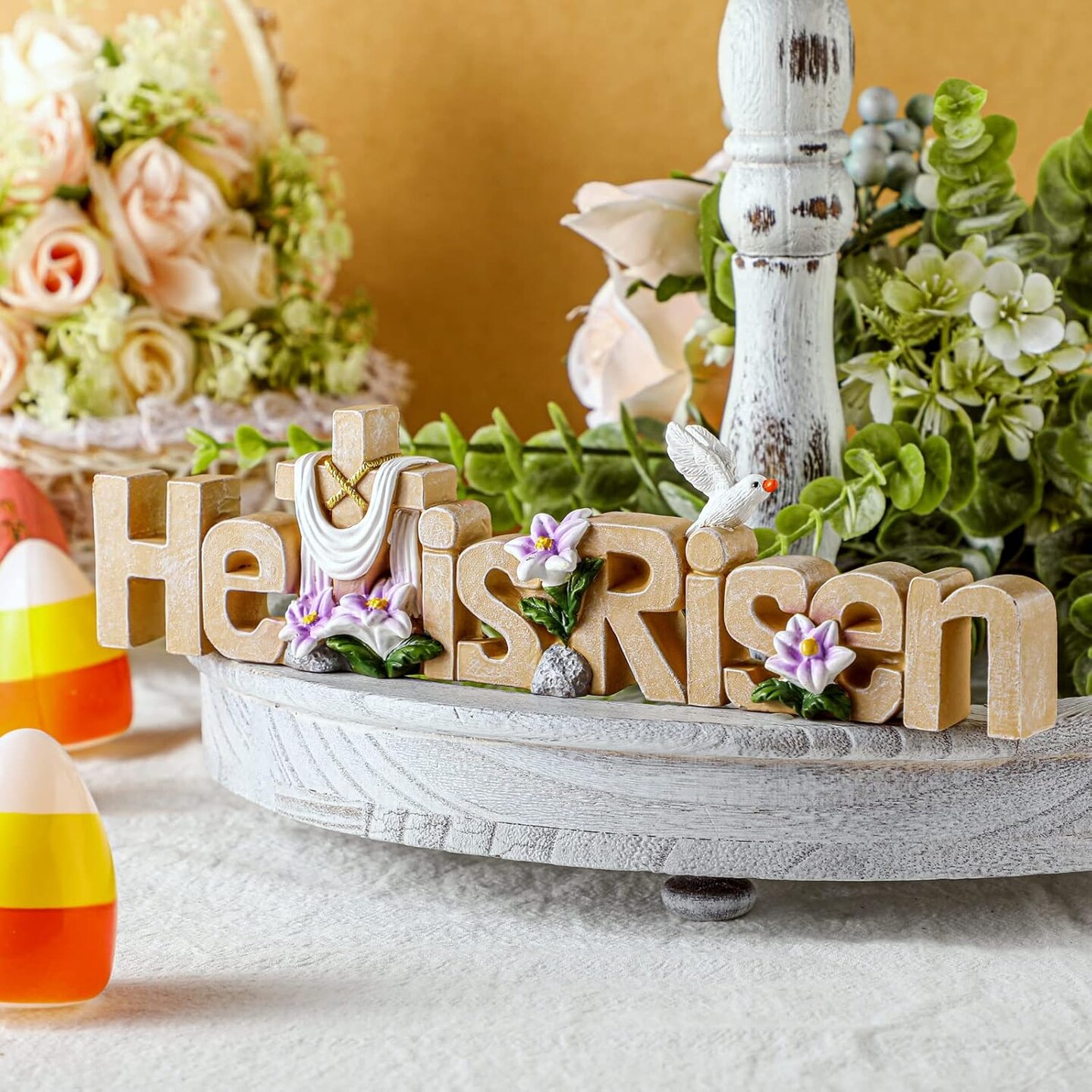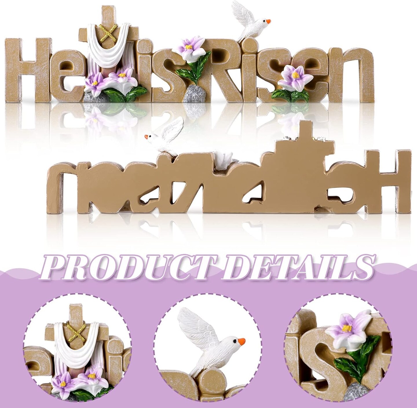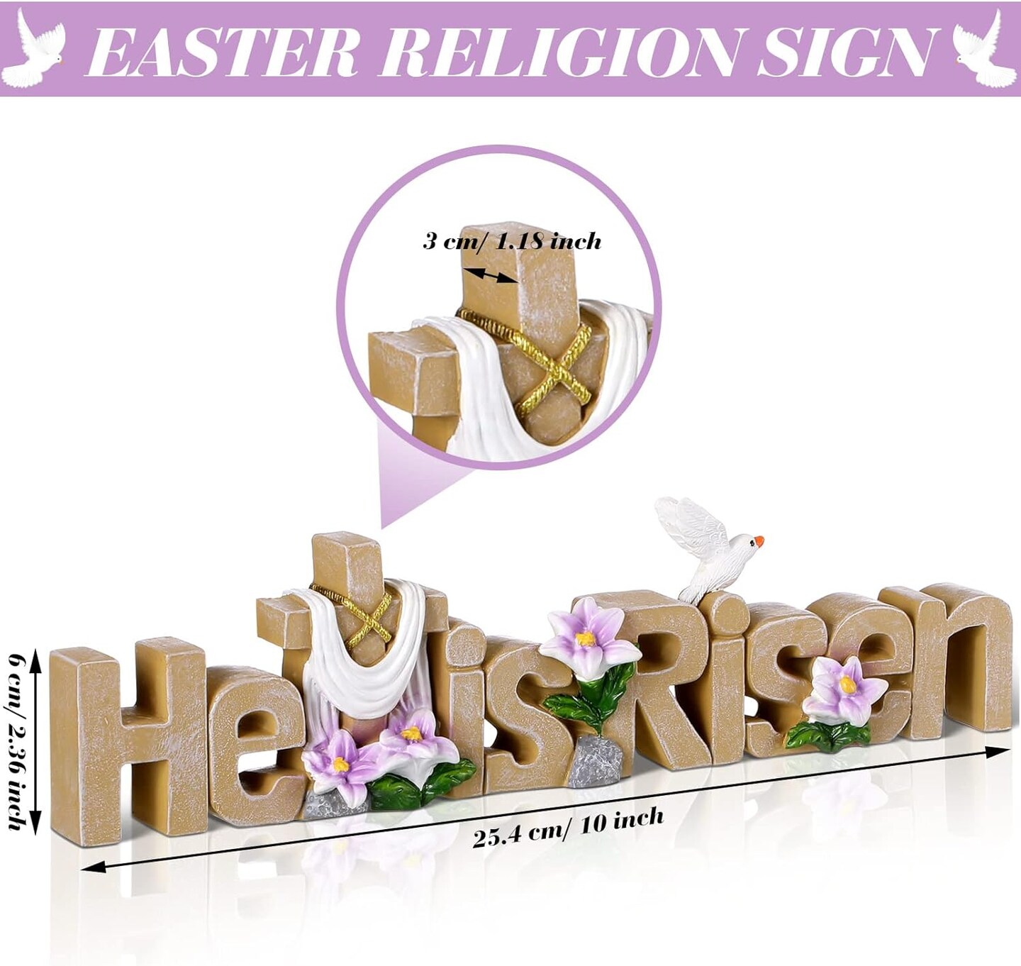 He is Risen Table Top Decoration Easter Resin Table Sign Cross Dove Flowers Easter Table Decor Easter Centerpieces for Table Top Easter Decorations for Home Dining Room Spring (Natural)