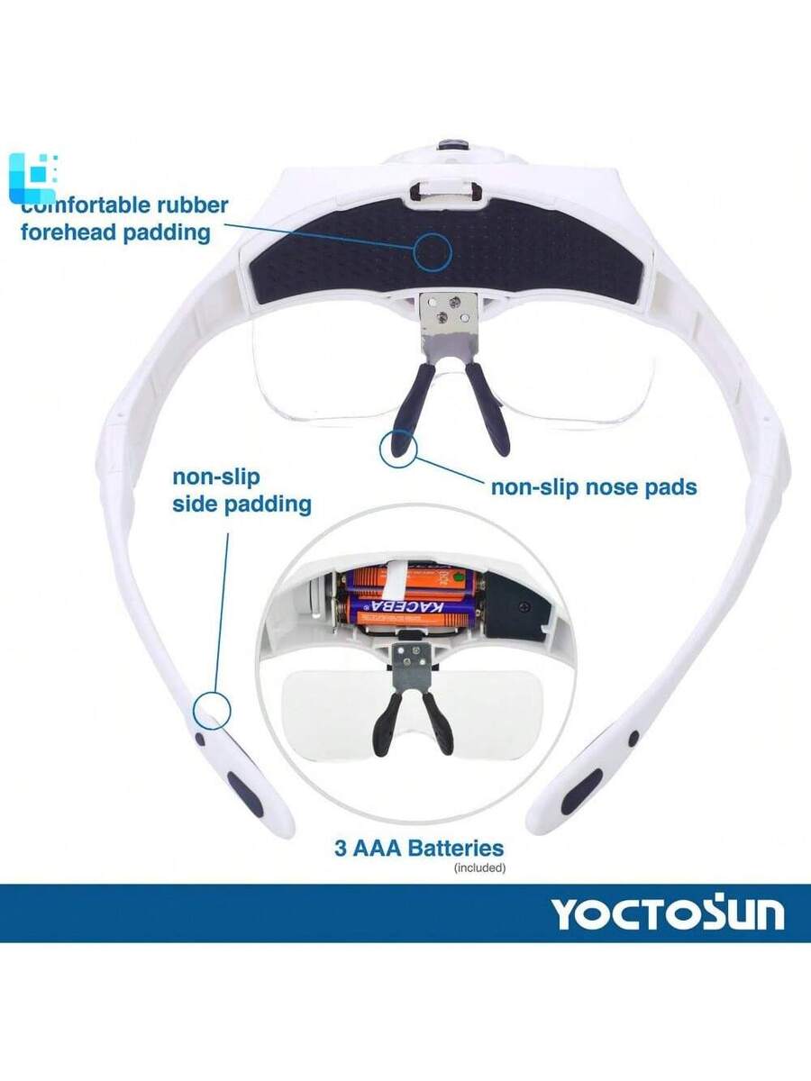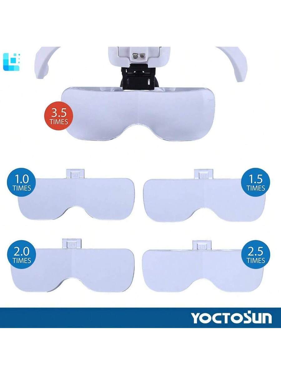 Head Magnifying Visor with 2 LED Lights and 5 Detachable Lenses (1X-3.5X)