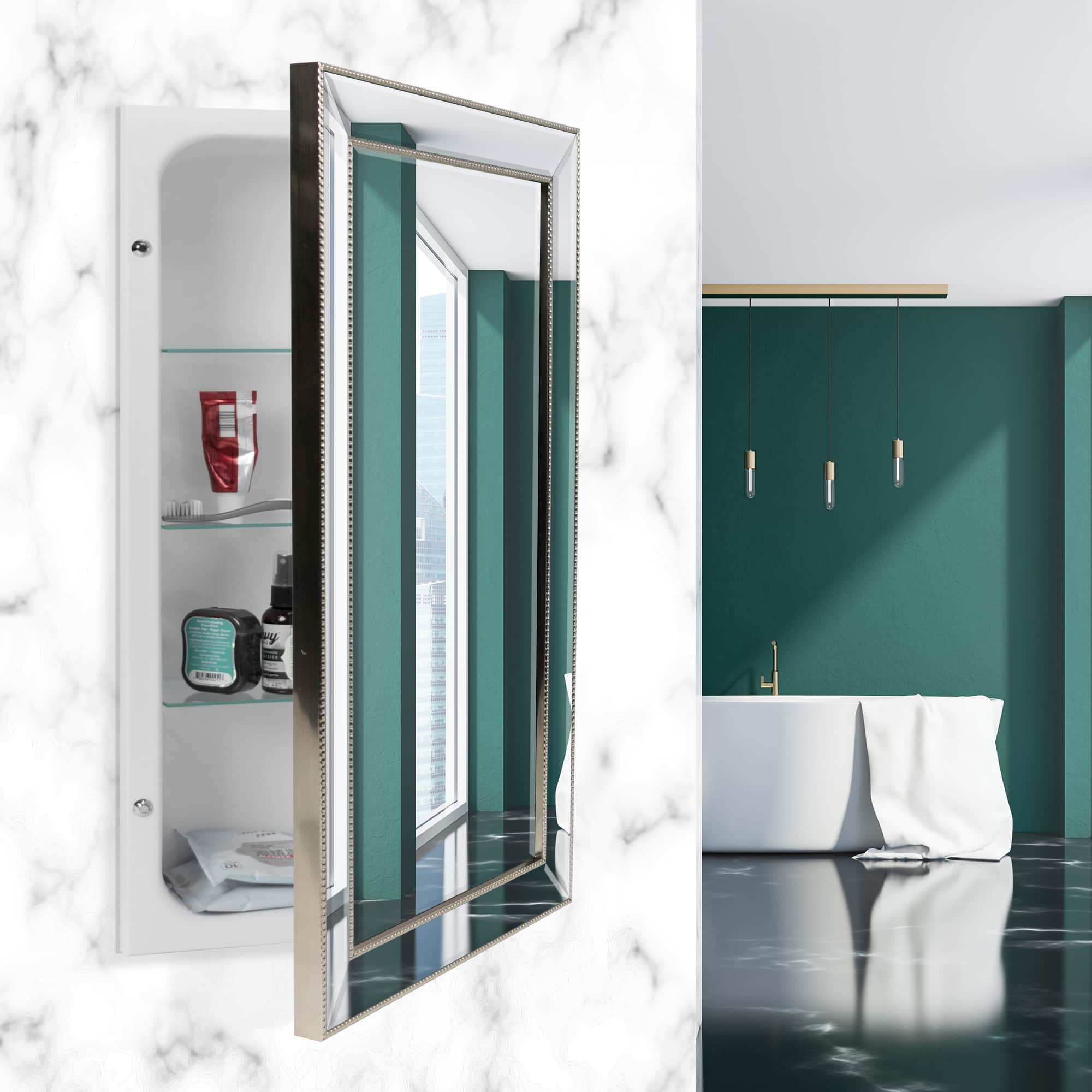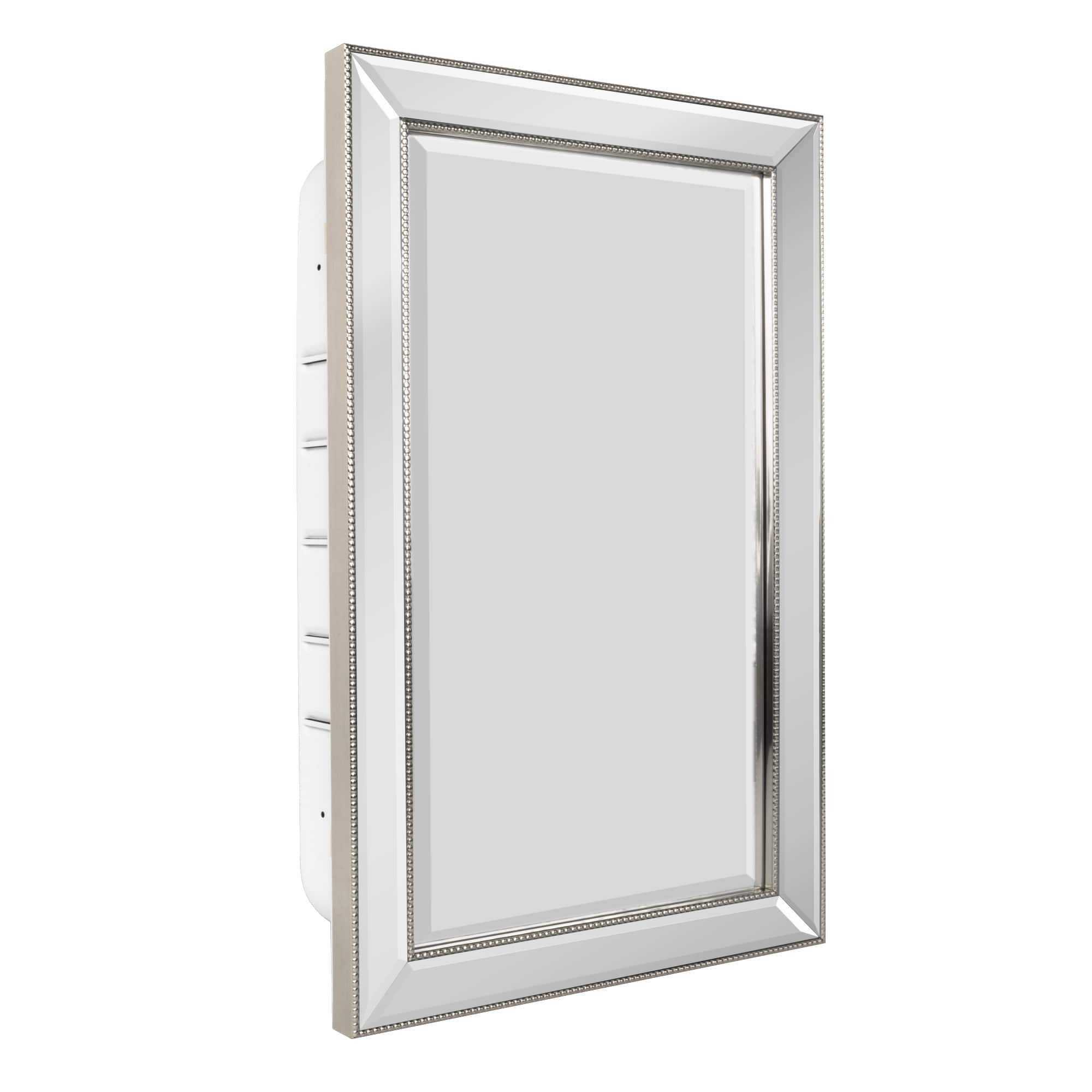 Head West Beaded Champagne Silver Framed Wall Vanity Mirror & Medicine Cabinet