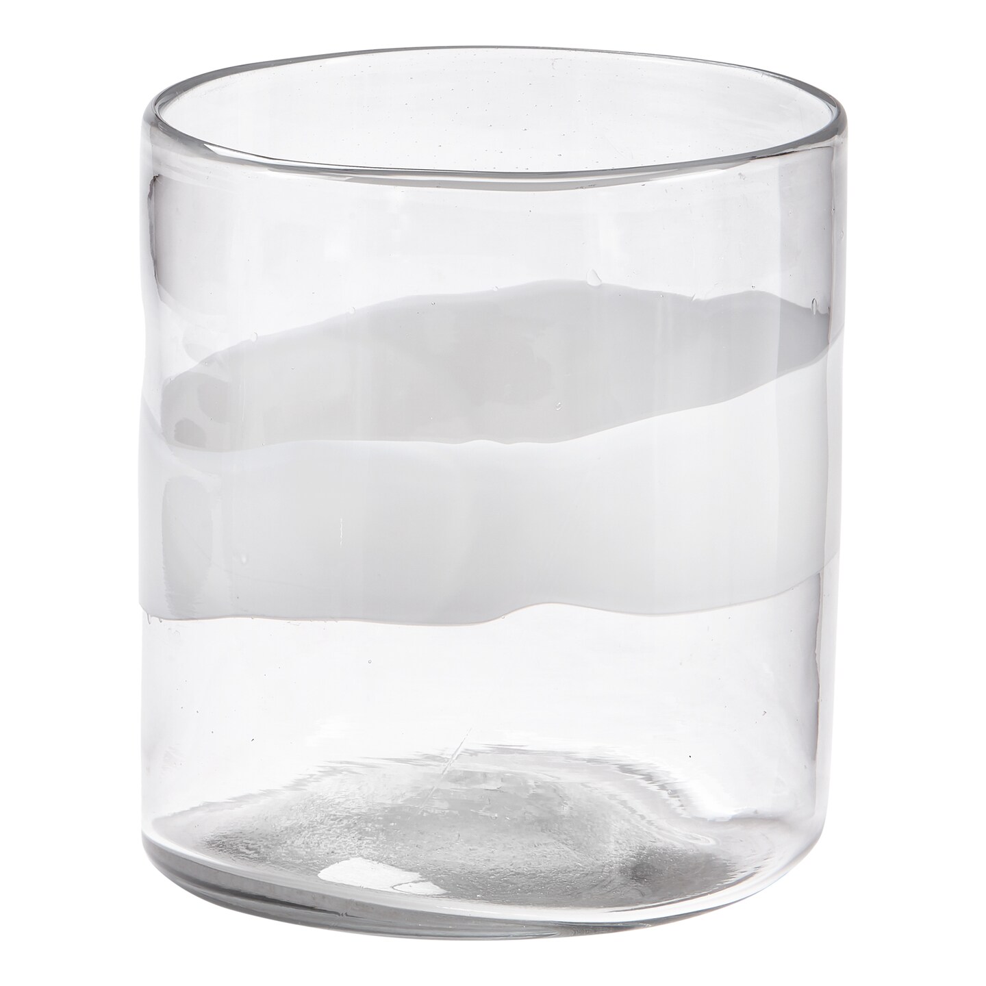 Headlands Hurricane Vase Clear Glass with White Wave Pillar Candle Holder Small Size 8.0L x 8.0W x 8.6H inches
