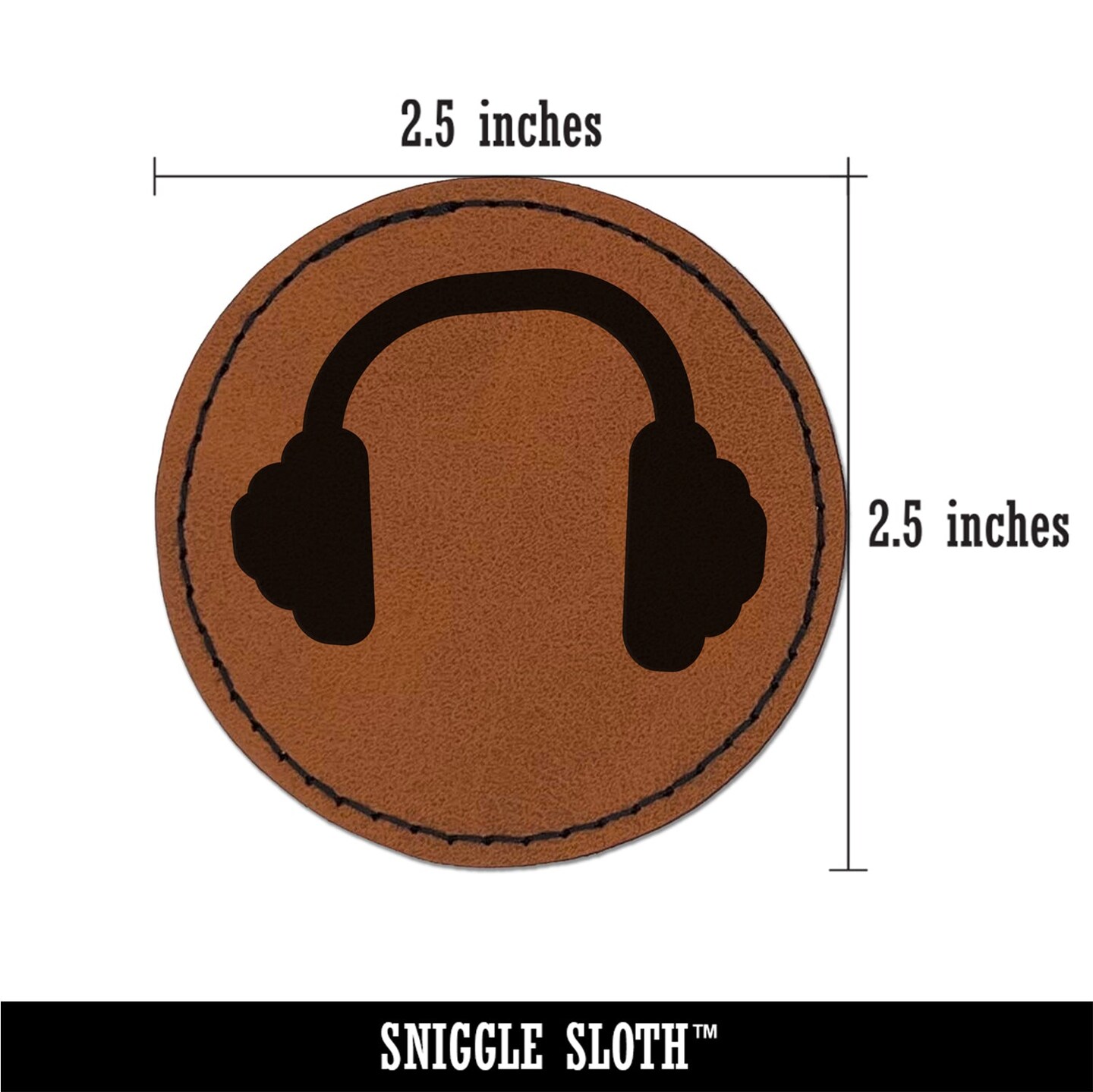 Headphones Ear Solid Round Iron-On Engraved Faux Leather Patch Applique - 2.5"