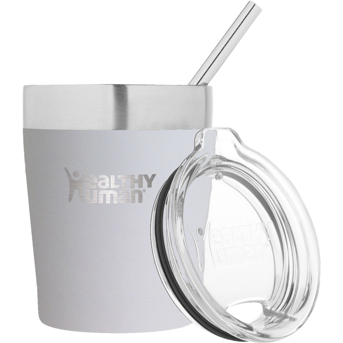 Healthy Human Stainless Steel Tumbler with Straw | Splash Proof Insulated Travel Cruiser Cup | Eco-Friendly Coffee Tumblers with Straws Cleaner & Splash Proof Lid (12oz, Pure White)