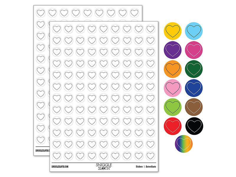 Heart Dashed Love Outline 200+ 0.50" Round Stickers
