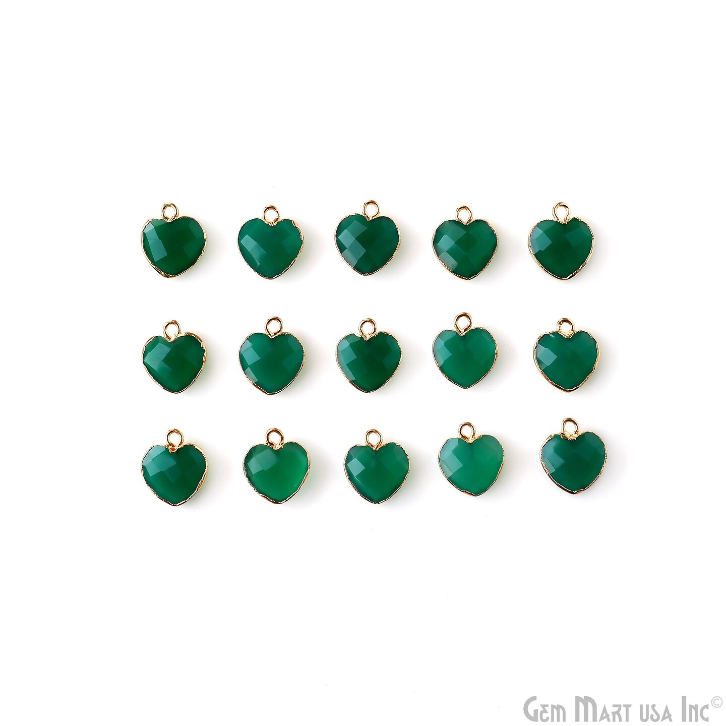 Heart Gemstone Pendant, Gold Electroplated Gemstone Charm, 13x12mm, Necklace Pendant, GemMartUSA (50794)