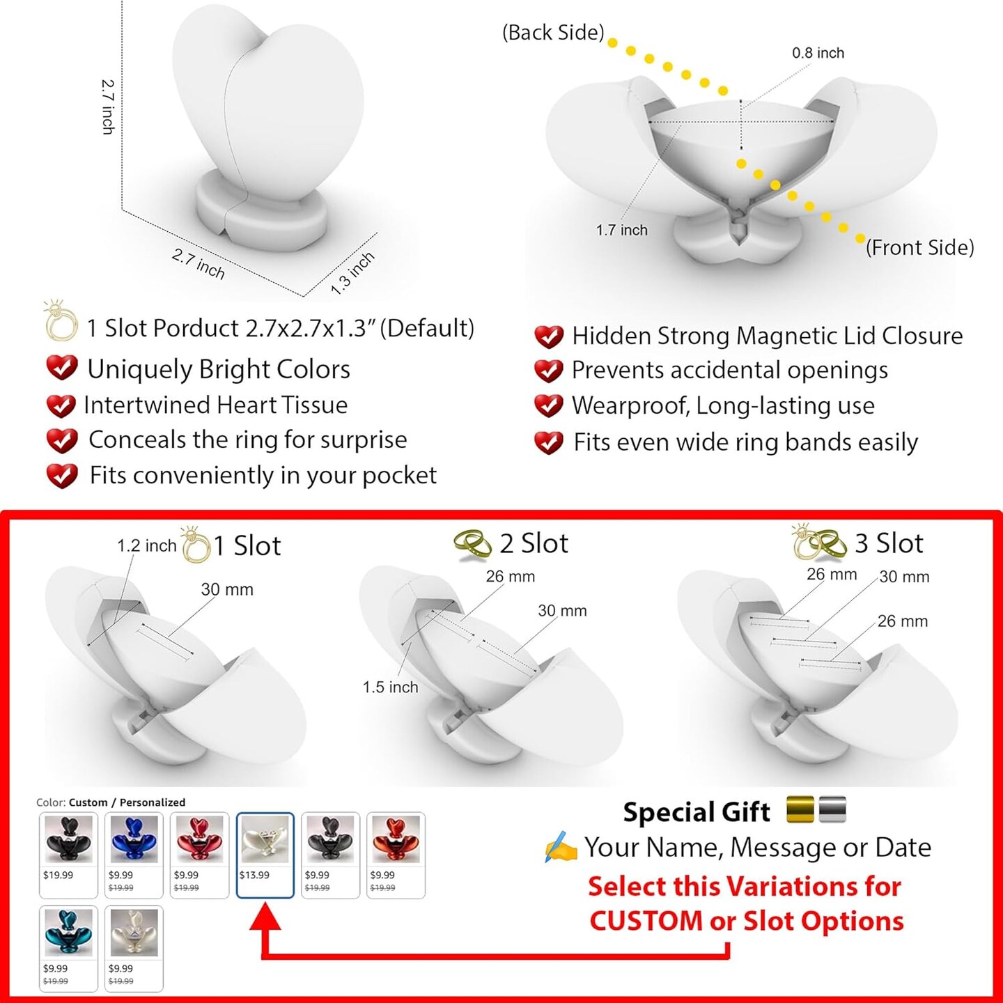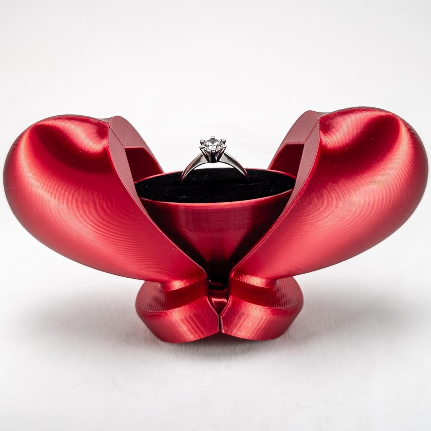 Heart Shaped Ring Gift Box Romantic Unique Design Ring Holder Jewelry Case For Gifts, Wedding, Engagement, Proposal, Birthday and Anniversary (Burgundy)