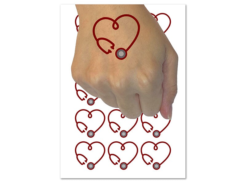 Heart Stethoscope Nurse Essential Worker Doctor Temporary Tattoo Water Resistant Fake Body Art Set Collection (1 Sheet)