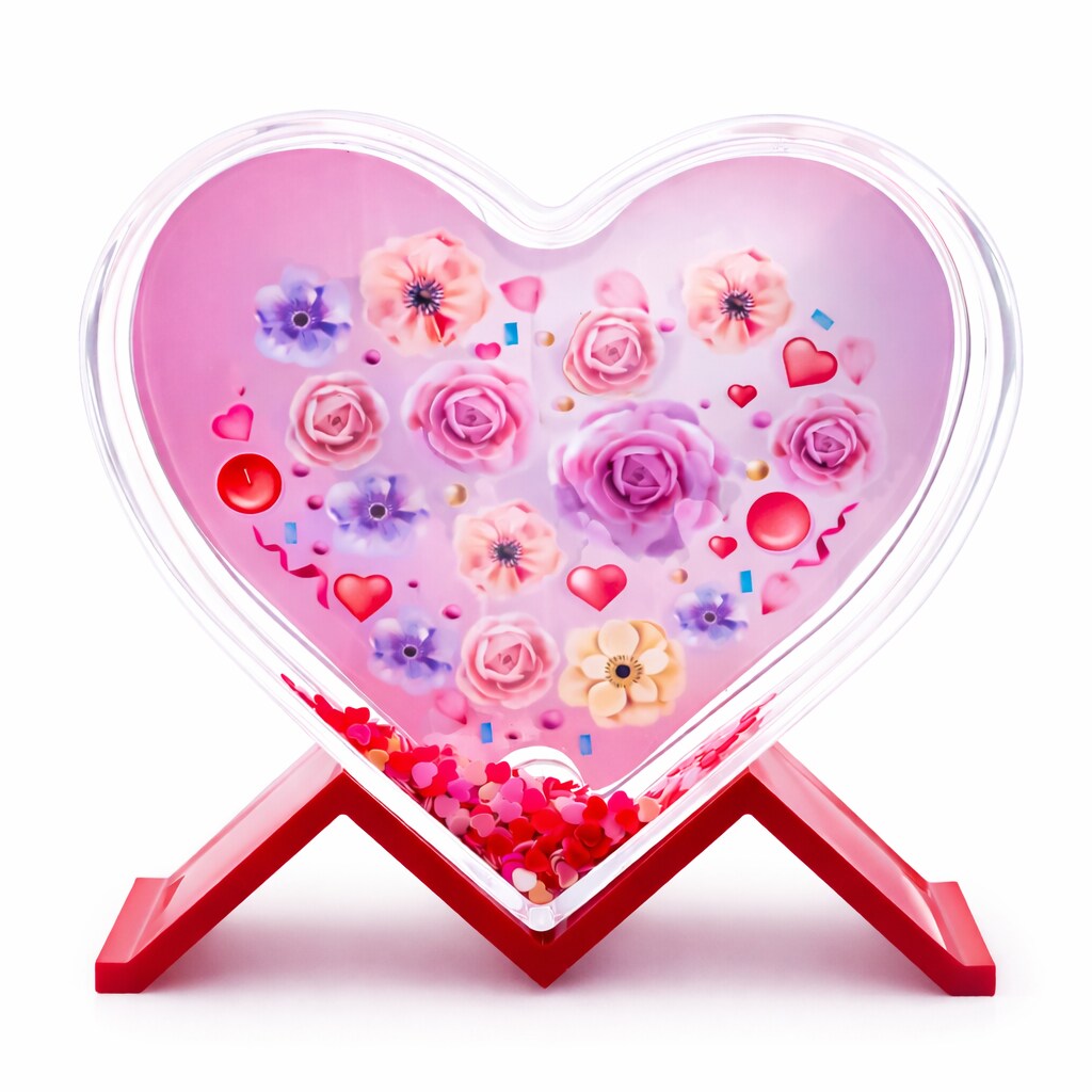 Heart-Shaped Glitter Plastic Photo Frame with Stand