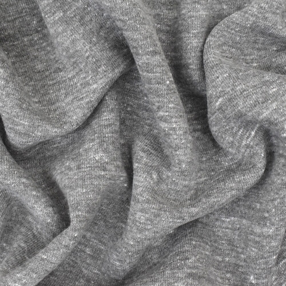 Heather Snow Gray-White Stretch Poly Cotton Brushed Terry Knit Fabric By the Yard